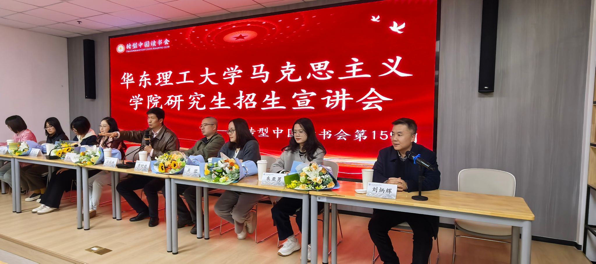 座谈会结束后,华理马院教师团队向我校同学开展研究生招生政策专场宣讲。这已是华理马院第三次专程来我校开展交流和研究生招生宣讲,其中,转型读书会近7年里累计向华理输送了6位博士生和18位硕士生,成为华理的研究生优质生源基地。