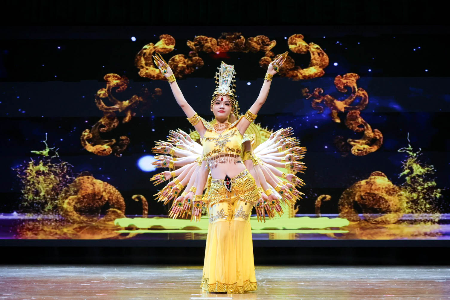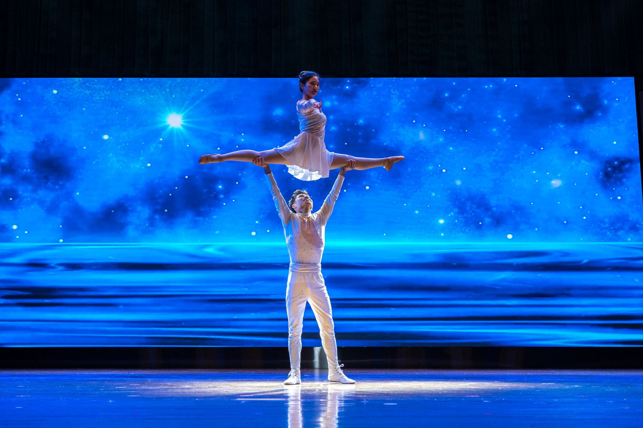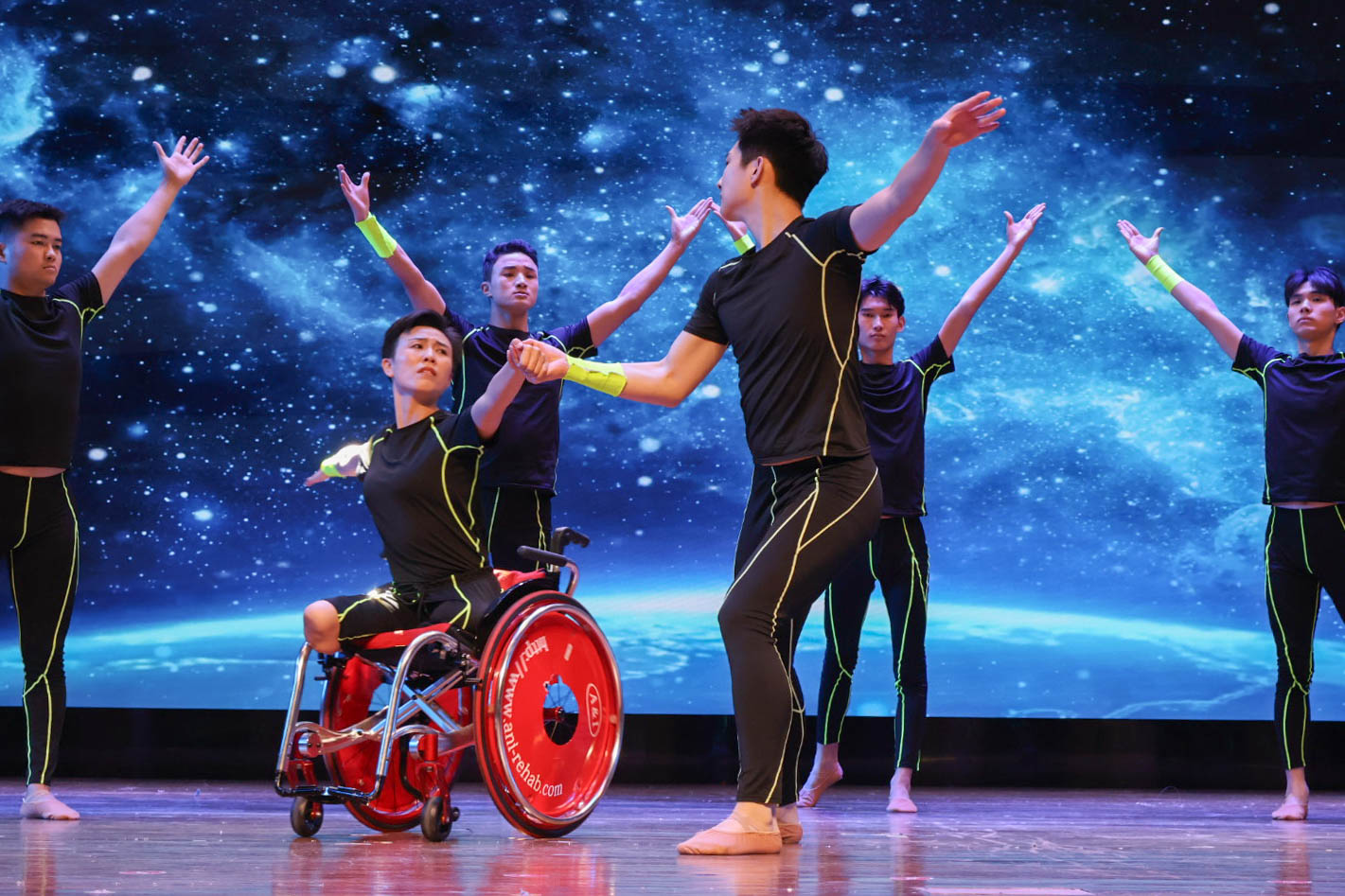 舞台上,北京残疾人艺术团身怀绝技的艺术精英们用舞蹈、民乐、杂技等多种形式进行表演。聋人演员陈文垒、潘倩倩带来双人杂技《中国力量》。他们以优美的舞姿、默契的配合展现生命之美,令现场掌声雷动。肢残人士周亮亮以川剧变脸《梦回西湖》亮相舞台。伴随着激烈欢快的音乐节奏,演员在旋转与跳跃之间迅速变换面具,并近距离与观众表演互动,展现令人拍案叫绝的传统艺术魅力。