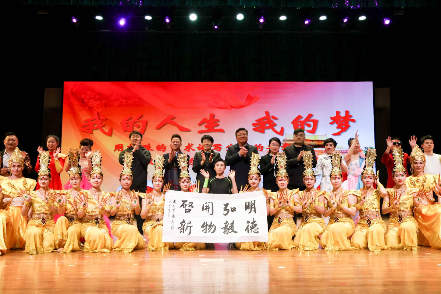 终场的《千手观音》更是将此次演出推向高潮。在动作停顿、节奏变化中,演员们注重刚与柔、快与慢,观众们反响热烈,掌声、欢呼声与赞叹声贯穿汇演全程,久久不散。演出最后,全体演出人员与嘉宾合影,校党委副书记黄光杰作总结讲话。他指出,同学们应当深刻领悟并用心学习艺术团演员们身上所散发出的自立自强、坚韧不拔、自信满满的精神风貌,以此为榜样,不断激励自己,深入思考并明确自我人生价值与崇高理想,为成就辉煌人生奠定坚实基础。