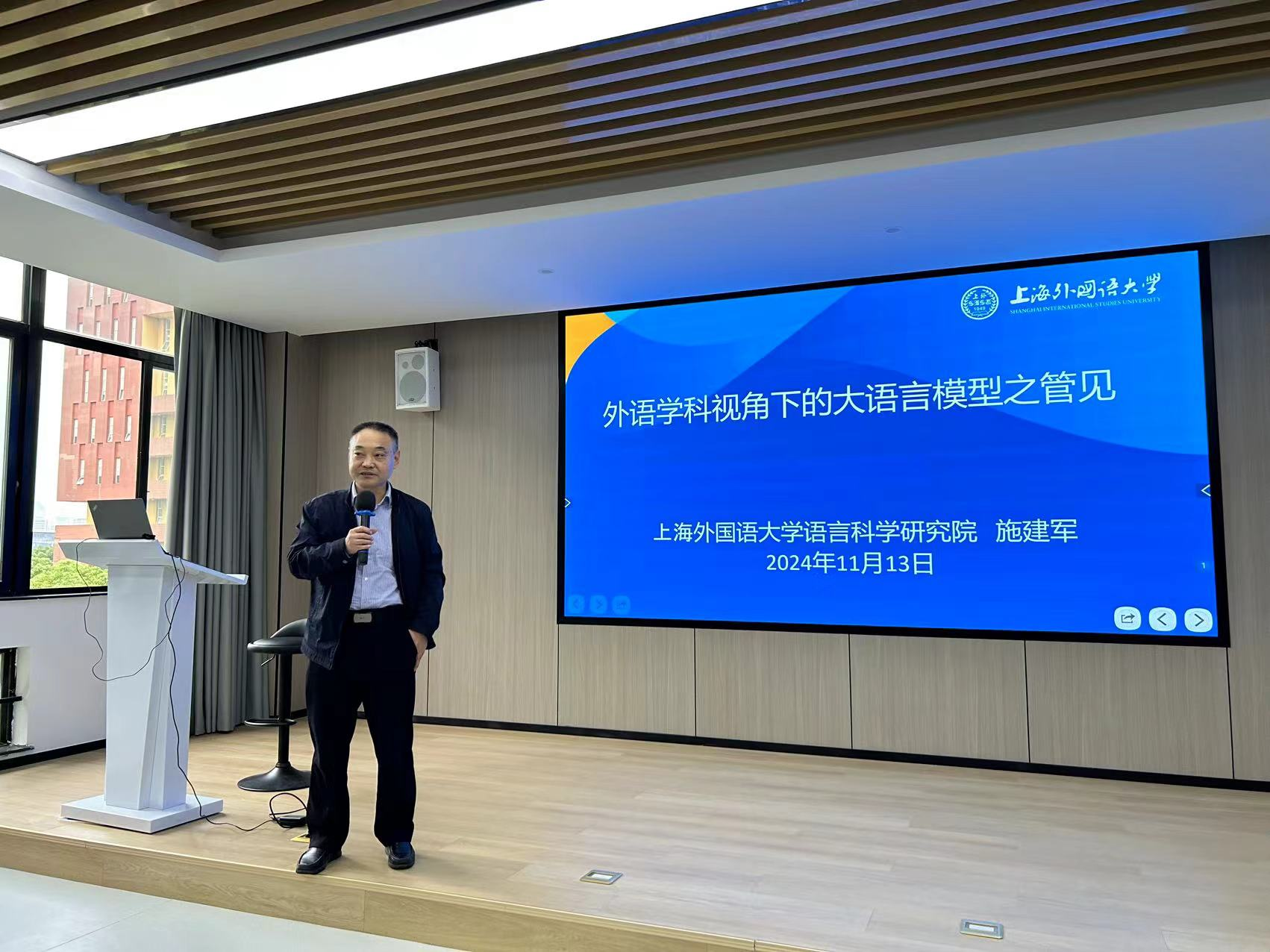 11月13日下午,由宁波市东亚文化研究中心和外国语学院东亚文明研究所举办的随园讲坛(59期)在我校举行,上海外国语大学语言研究院施建军教授为我校日语系师生带来了以“外语学科视角下大语言模型之管见”为主题的精彩讲座。