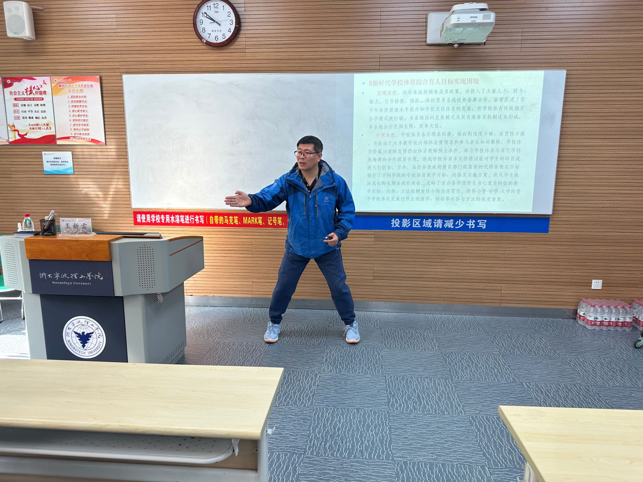 王新雷教授以篮球课程作为切入点,依托系统理论,深刻剖析了如何在系统思维与机体思维的双重引领下,科学合理地规划高校新教师的个人职业发展蓝图。同时,他还结合实际教学案例,旁征博引、循循善诱,为在场的教师们带来了一场思想碰撞与知识交融的盛宴,内容丰富多彩,令人受益匪浅。