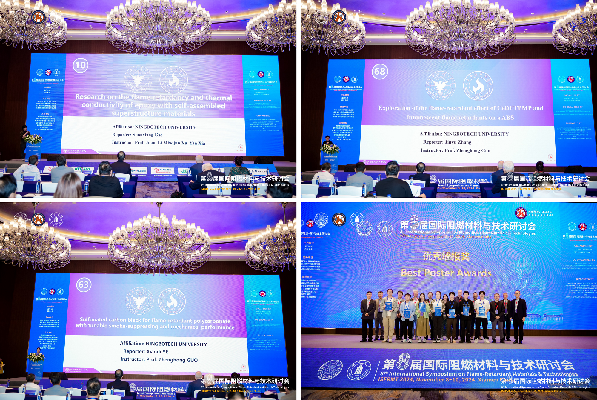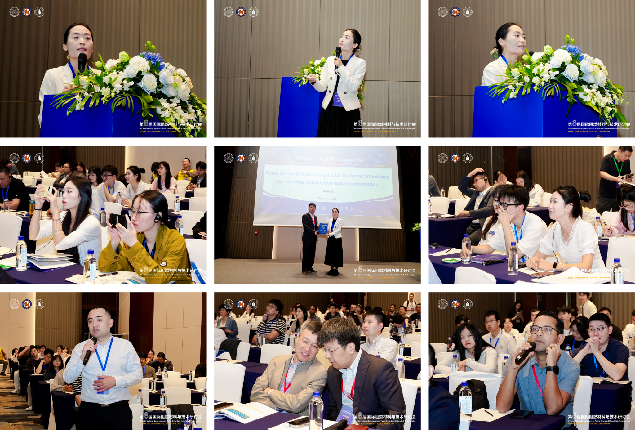 2024年11月8日至10日,第八届国际阻燃材料与技术研讨会(ISFRMT 2024)在厦门温德姆至尊豪廷大酒店盛大召开。本次会议由厦门大学和四川大学联合主办。自2010年创办以来,ISFRMT每两年在中国举办一次,已成为国际阻燃界最具影响力的盛会之一,同时也是学界和产业界共同研讨阻燃领域科技与产业发展方向的重要平台。我校材料科学与工程学院火安全材料研究所主要成员参加了此次会议。