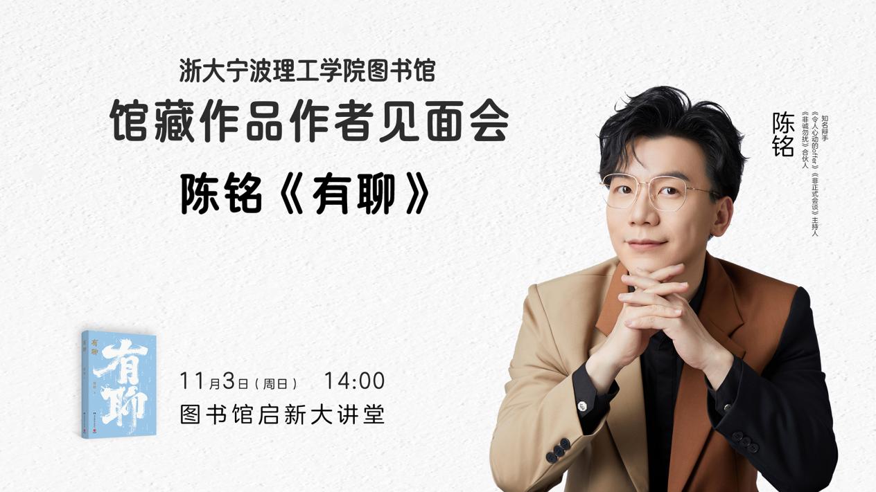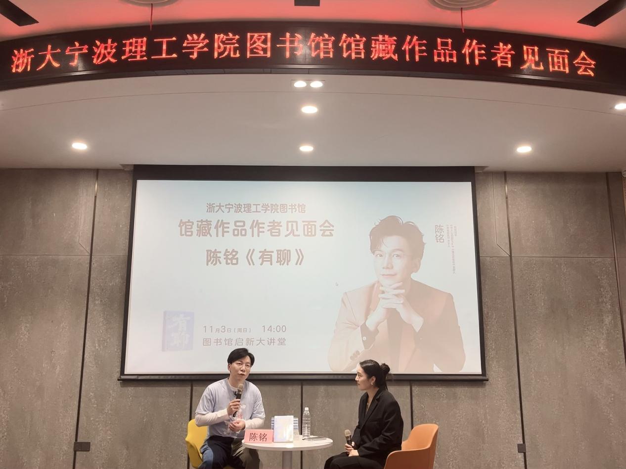 11月3日,浙大宁波理工学院启新大讲堂内座无虚席,学生们满怀期待地等待着一场图书馆“馆藏作品作者见面会”。此次见面会的主讲嘉宾是知名辩手、武汉大学教师及畅销书作者——陈铭老师,他携新书《有聊》与广大学子进行了一场深入心灵的对话与启迪。
