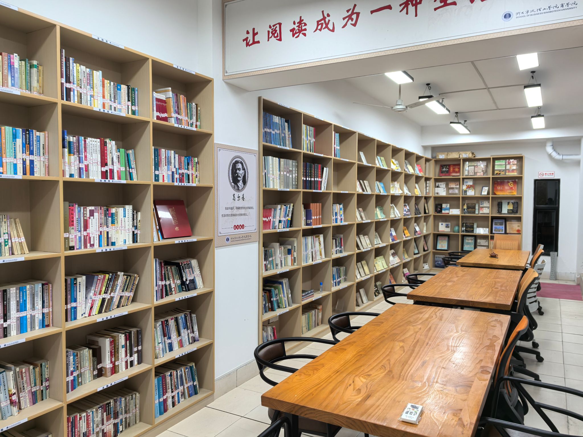 据了解,金融书苑2023年9月开始筹建,2024年6月建设完成。金融书苑共分为四个区:金融图书区(含有金融、银行、信托、证券和保险分类图书),金融历史图书区、金融名人名著区和金融文物区。目前共有图书1632册,金融文物88件。其中商学院金融系捐赠图书28册,王珏麟先生捐赠图书1604册,金融文物88件。