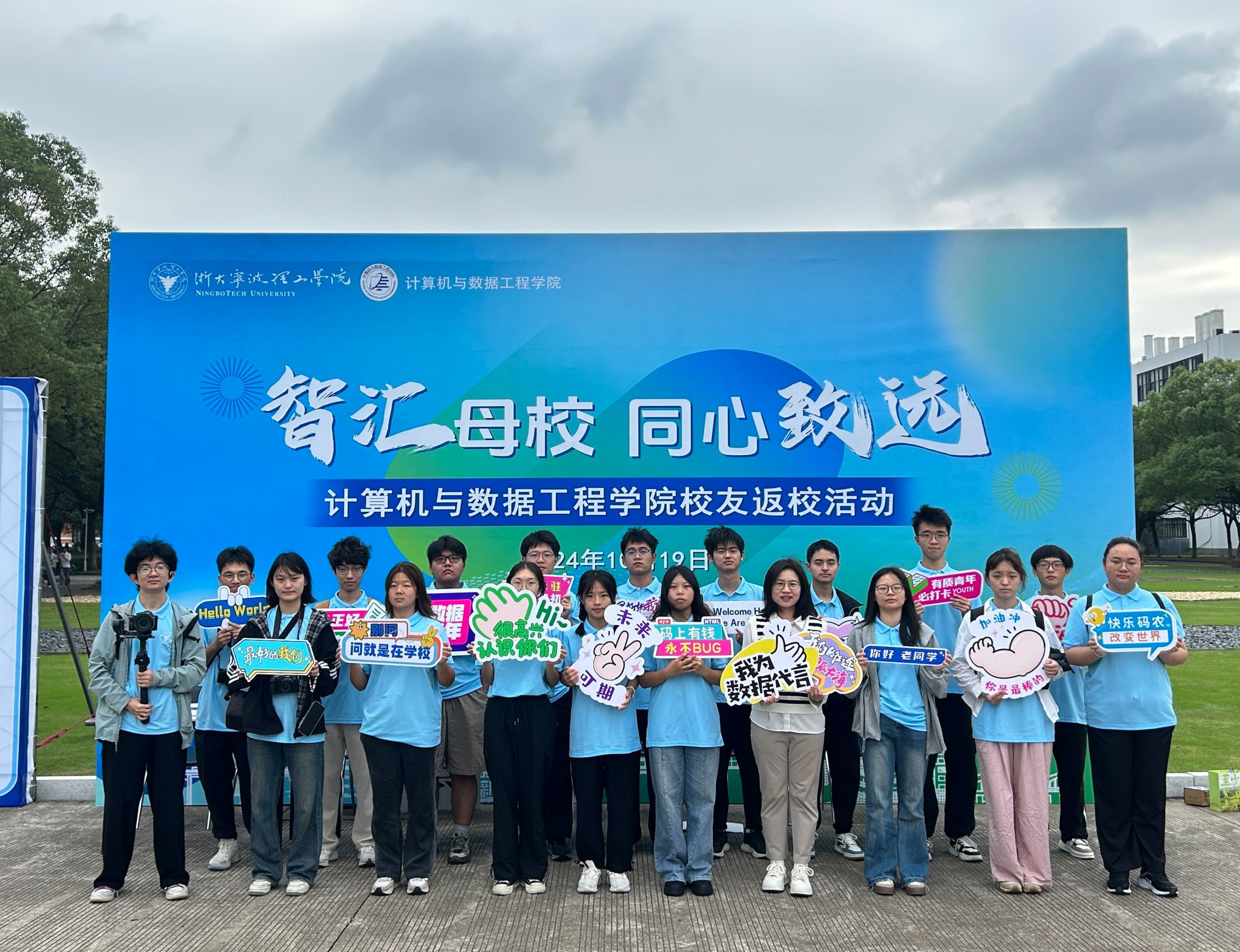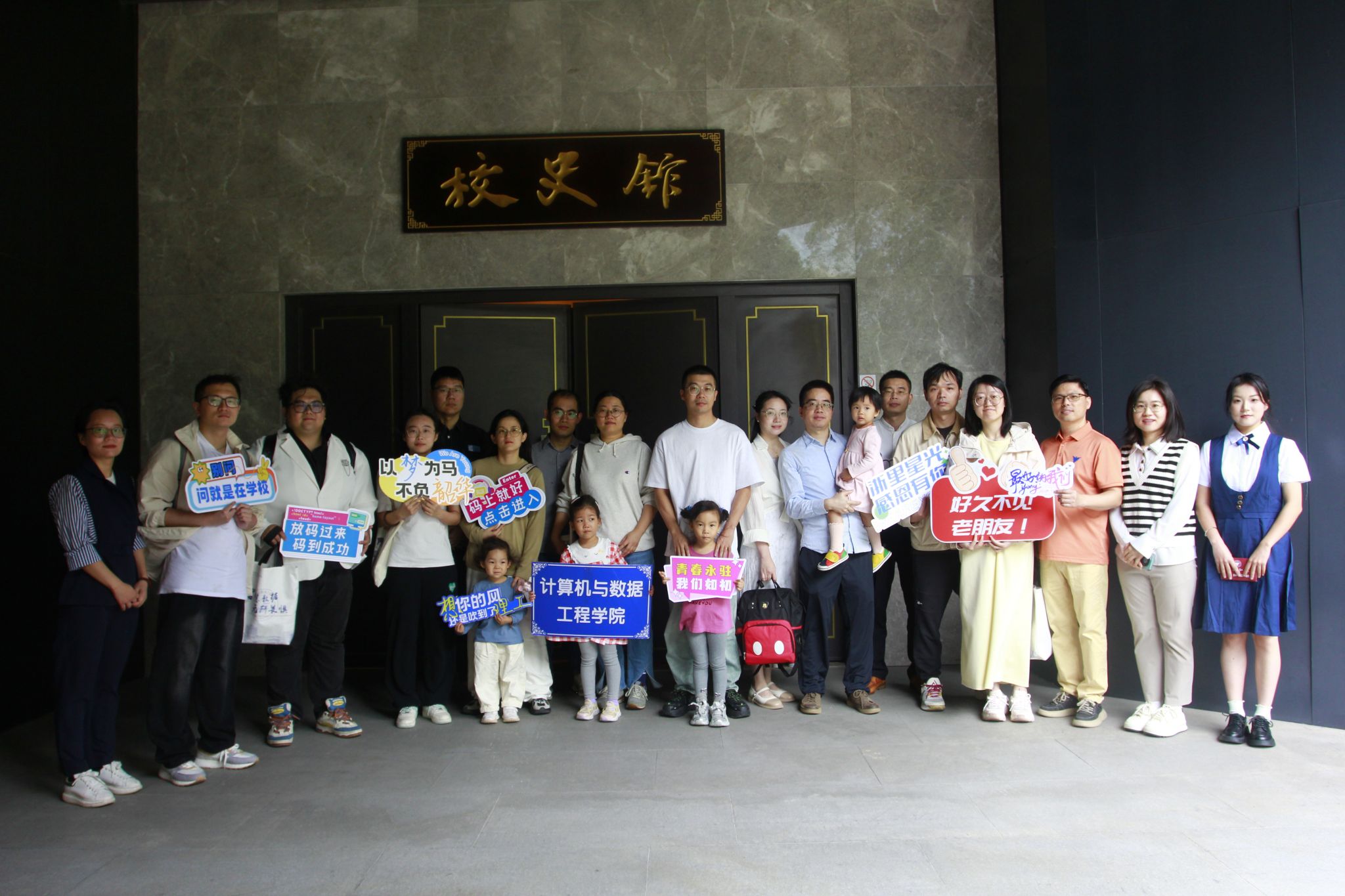活动最后,校友们在可珍讲堂前合影留念,共同见证了这次校友返校活动暨第三期数字论坛的圆满成功。此次活动不仅加深了校友们对母校的感情和归属感,也为他们提供了一个交流思想、分享智慧、共谋发展的宝贵平台。相信在未来的日子里,校友们将继续发扬求是精神,为母校的发展贡献自己的智慧和力量。