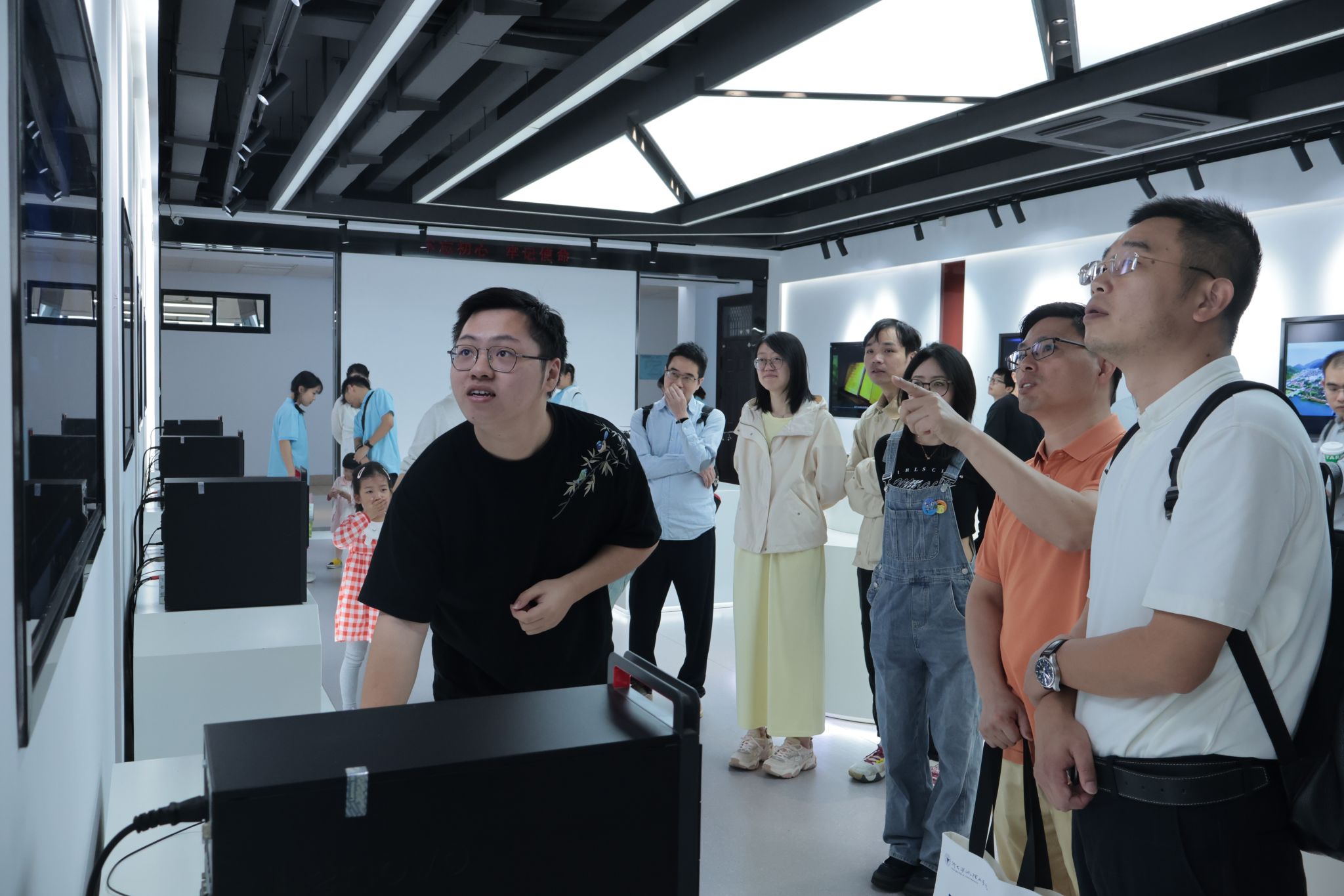 活动中,校友们一行参观了学院的校企联合实验室。在城市智能技术与应用宁波工程研究中心,校友们亲眼见证了大数据与人工智能人才培养的累累硕果。随后,他们走进了新型智能算法重点实验室,近距离观赏了无人机模型,并详细了解了无人机在船舶智慧渔政视频预警、农业作物观测以及农作机器工作监督等领域的广泛应用和前景。