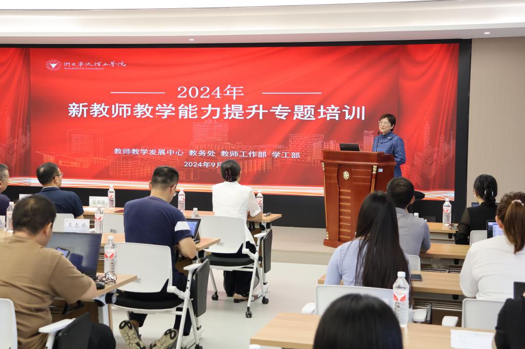 9月25日,2024年新教师教学能力提升专题培训导学仪式隆重举行。学校副校长张荣祥出席仪式并致辞。国家级教学名师、浙江大学教授吴敏应邀作“名师有约”专题报告。教务处、教师工作部、学工部和教师教学发展中心相关负责人出席仪式。全体参训教师参加学习。