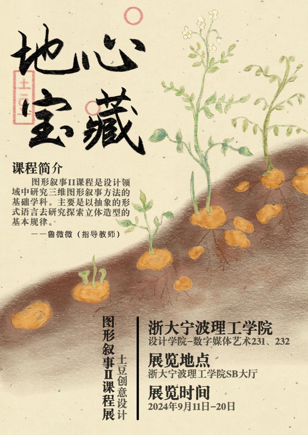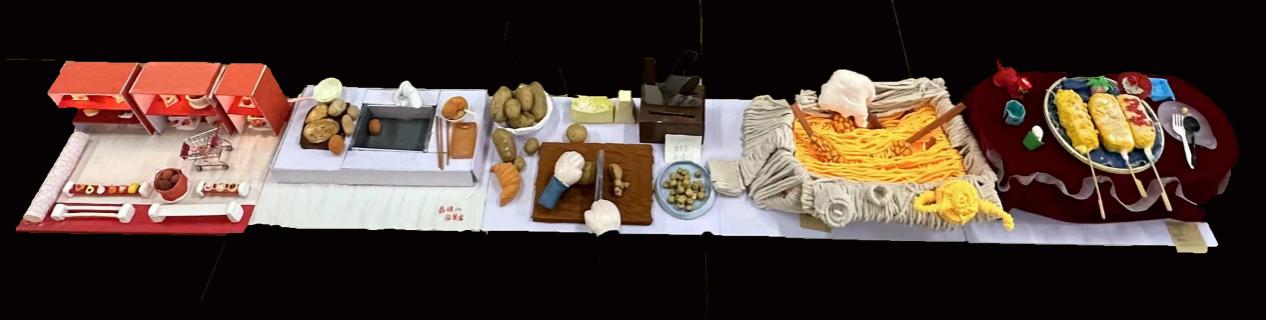 近日,设计学院在学校南教学楼一楼大厅举办“地心宝藏:从泥土到餐桌的奇妙旅程”课程作品展。2023级数字媒体艺术专业学生在《图形叙事Ⅱ》课程鲁微微老师的指导下,设计了一系列以土豆为主题的趣味作品,如《土豆的环球旅行》《去码头整点薯条》《土豆的冒险》《土豆地雷》《土豆的运输与销售》《芝士土豆棒》等等,妙趣横生,吸引了广大师生驻足观赏。