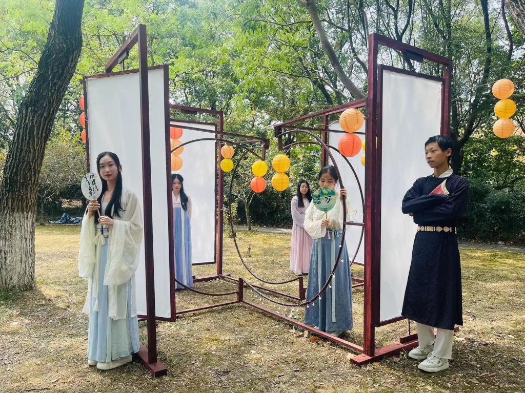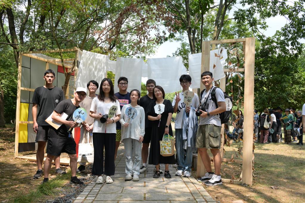 “景巷丛生”营造了一个可以互动参观的月亮门古风建筑,为汉服社以及师生提供拍照打卡的场所。展览当天,小组请到老师和古风社成员在建筑里互动拍照,现场其乐融融,建筑也获得了师生们的认可和喜爱。这次搭建实践不仅增强了小组成员对建筑空间、结构和美学的感知,也锻炼了他们的动手能力和团队协作精神。