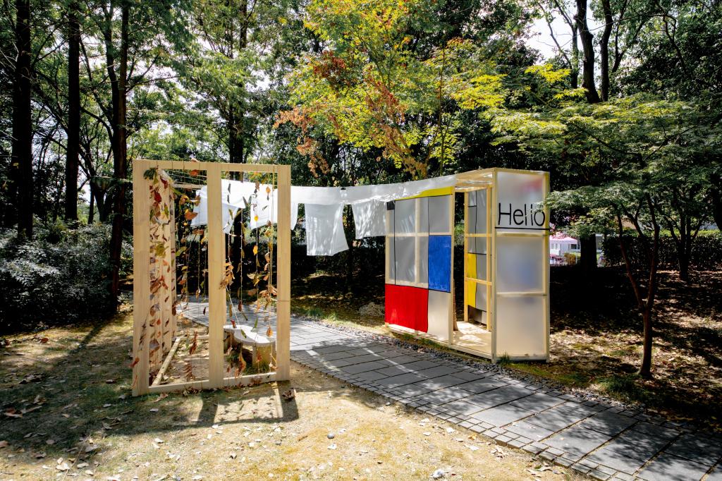 在随园的一角,小径两旁,打造一个以“校”字为灵感的交流空间—“学校之初是棵树”,在树木下交流。作品以木材和PVC磨砂片构建了一个半围合的搭建小品,旨在重现树下交流的温馨场景。这个空间不仅提供了一个让人停留的场所,更是一个促进社交互动的平台。与场地内的石凳、路径互动,并将自然元素如落叶、树,融入设计,通过虚实结合的手法,营造出一个既现代又富有自然气息的交流环境,吸引人们在此穿行、相遇,开启对话:“Hello,let’s talk.”