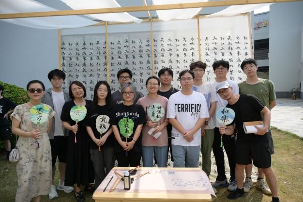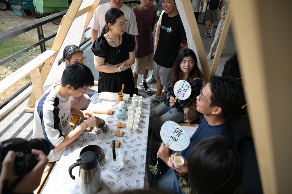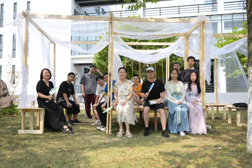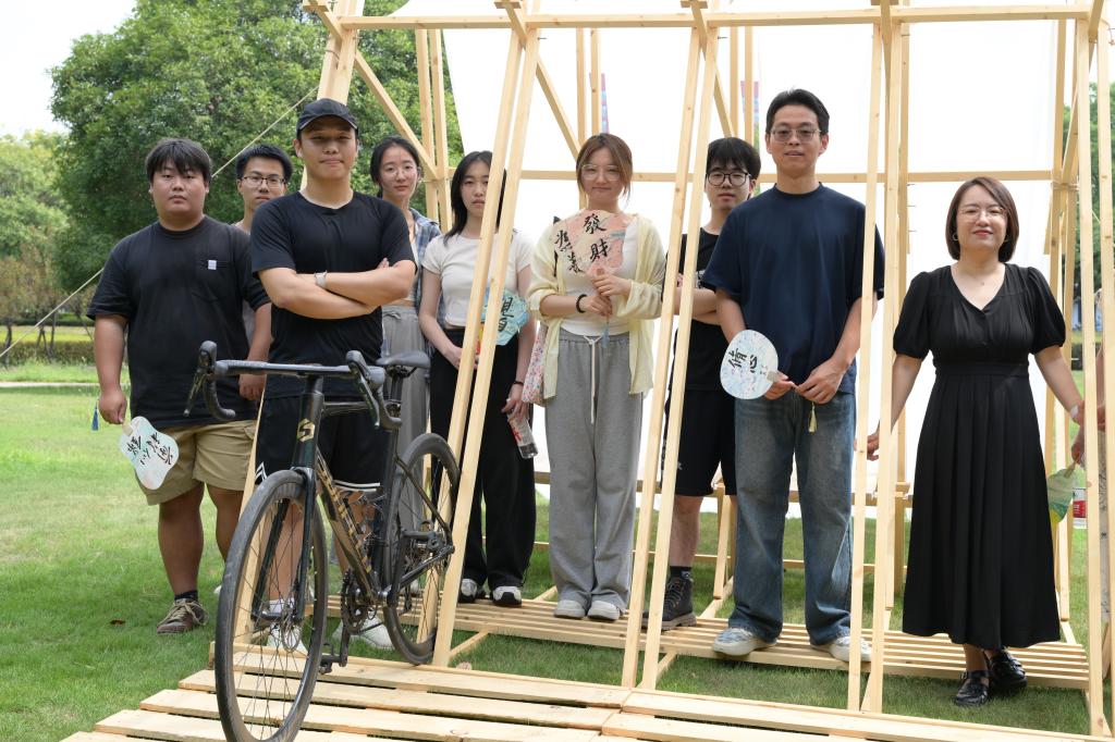 9月7日,设计学院建筑学专业联合校汉服社、书画社、骑行社、大益爱心茶室社等多个社团举办的《建筑学营造实践》课程成果展在南教学楼大厅开幕。设计学院教师代表以及建筑学专业学生与社团成员共80余人参加了此次活动。