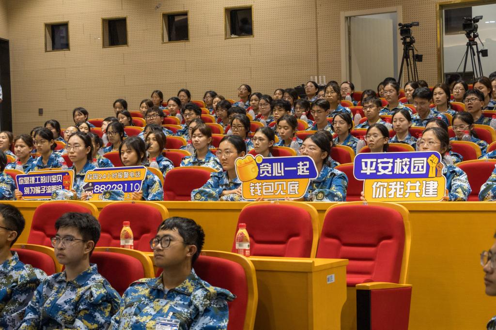 学校安全保卫部仇梦华老师向新生详细介绍了校园安全工作基本情况,强调国家安全、电信网络诈骗、交通安全、防火防盗、防欺凌等学生安全隐患并讲解各类防范措施。全体新生通过线下和线上的直播的方式观看了讲座。