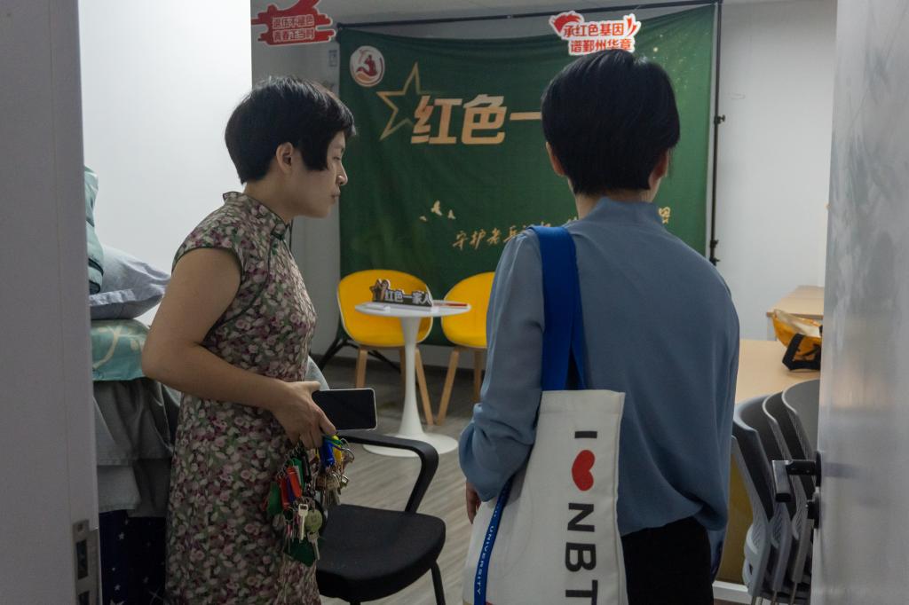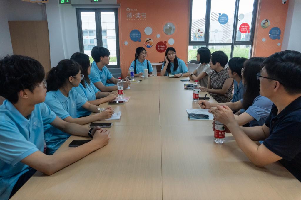 晴江社区党总支书记陆静向实践团成员们介绍了社区的共享直播间以及入驻项目。“一千零一夜故事”“太极队”“就业帮帮团”“小晴哥零工驿站”等项目在她的详细介绍中,形成一幅幅生动的画面,让成员们感受到数字技术的融入让这些场景变得更加鲜活。数字化直播不仅扩大了参与范围,也让无法到现场的居民感受到了同样的乐趣和启发。