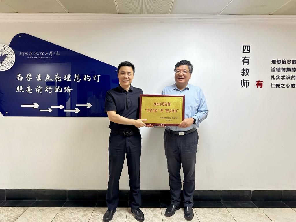 会上,双方围绕应急处突、学生心理问题等安全问题进行了深入交流。会后,宁波公安局为我校颁发浙江省省级“平安单位”暨“智安单位”荣誉牌匾。