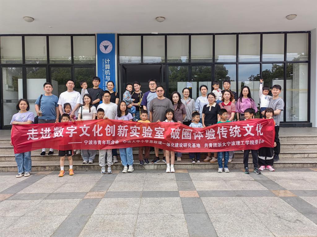 为进一步推广“大思政课”建设,探索宁波大中小学思政课一体化活动新形式,5月19日,宁波市青年联合会、宁波大中小学思政课一体化建设研究基地、共青团浙大宁波理工学院委员会共同组织主题为“走进数字文化创新实验室 破圈体验传统文化”的亲子研学活动。