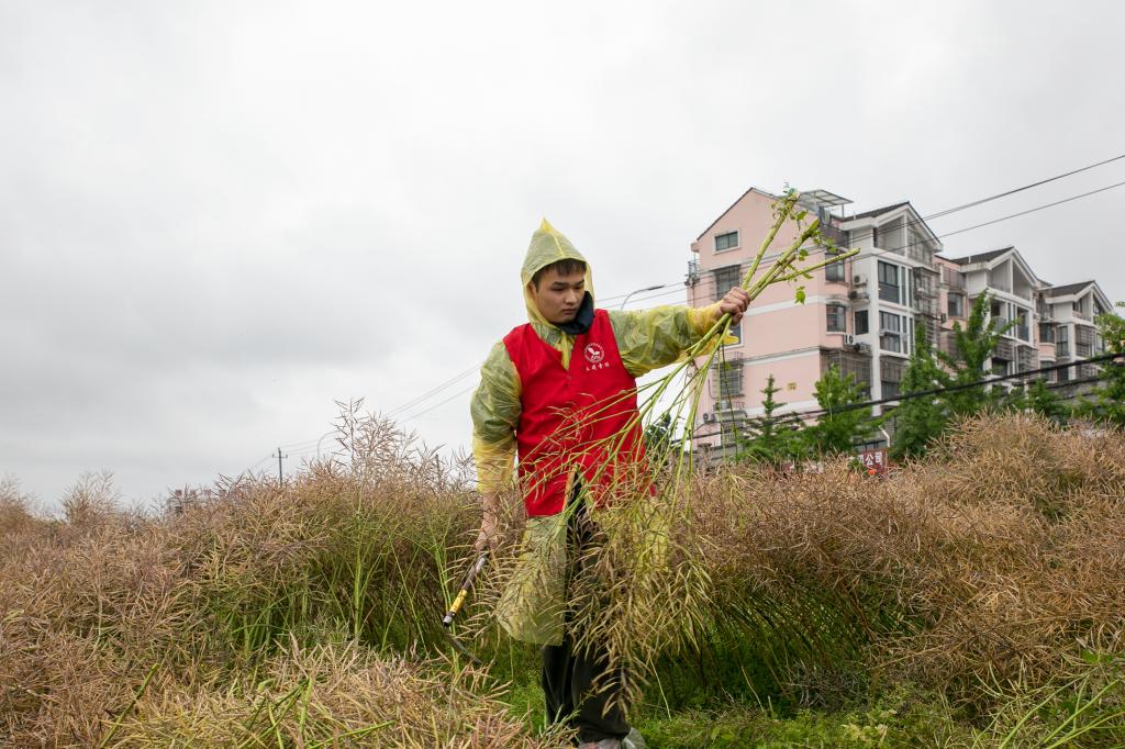 为弘扬雷锋精神,争做新时代志愿者,5月12日,浙大宁波理工学院土建学院学生在宁波市海曙区星火公益志愿服务队的组织下参与“浙江有礼·奉献有爱”学雷锋助农收割油菜活动。