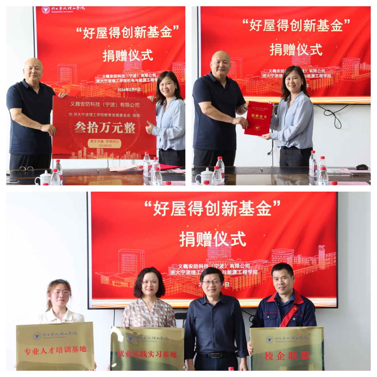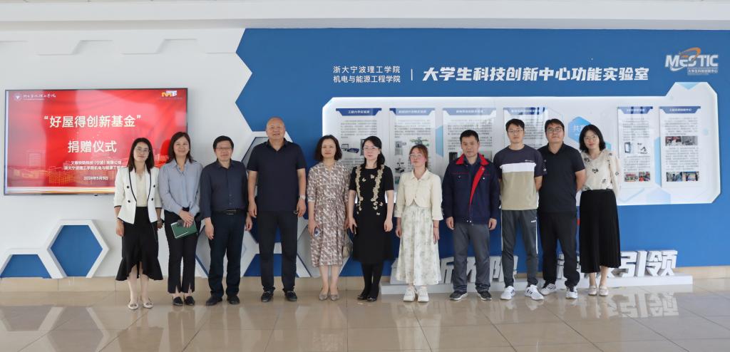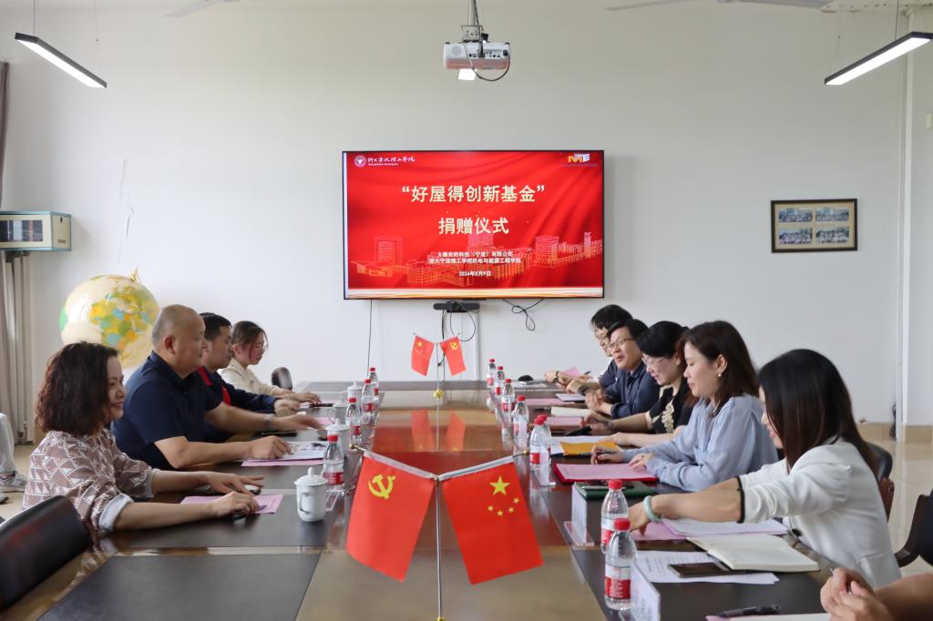 5月9日下午,机能学院“好屋得创新基金”捐赠签约仪式在NA408会议室举行。义巍安防科技(宁波)有限公司总经理刘朝峰及其相关部门负责人,学校招就处、机能学院相关负责人及专业教师代表等出席会议。
