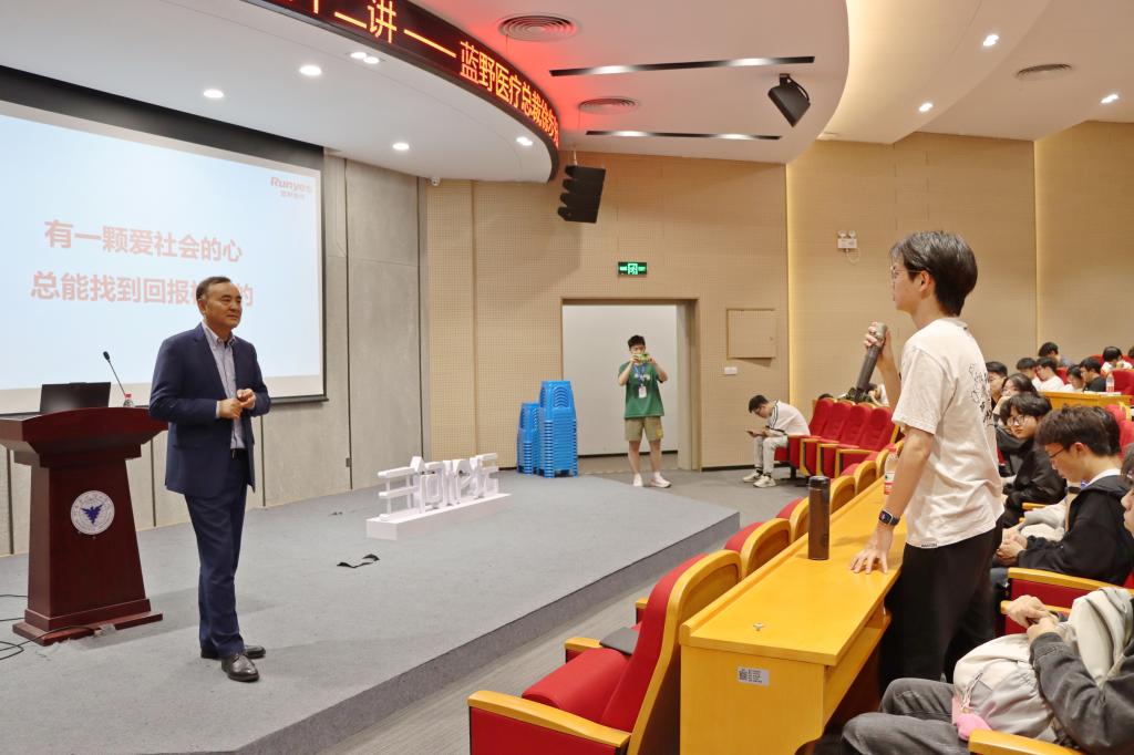 徐步光与同学们分享了影响其创业理念的五本书。他从自身经历出发,以一名机械专业毕业生的角度总结阐释如何成长为一名优秀的企业家。他回顾了蓝野医疗自2000年成立以来的四次重大转型,从最初的配件生产到整机制造,再到产业链整合,直至打造口腔全产业生态链,蓝野医疗的每一步发展都紧跟国家政策和市场需求,展现企业的创新精神和前瞻视野。