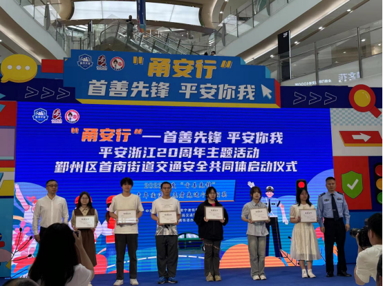 5月10日,“首善先锋 平安你我”平安浙江20周年主题活动暨“甬安行”鄞州区首南街道交通安全共同体启动仪式在宁波环球银泰城举行。