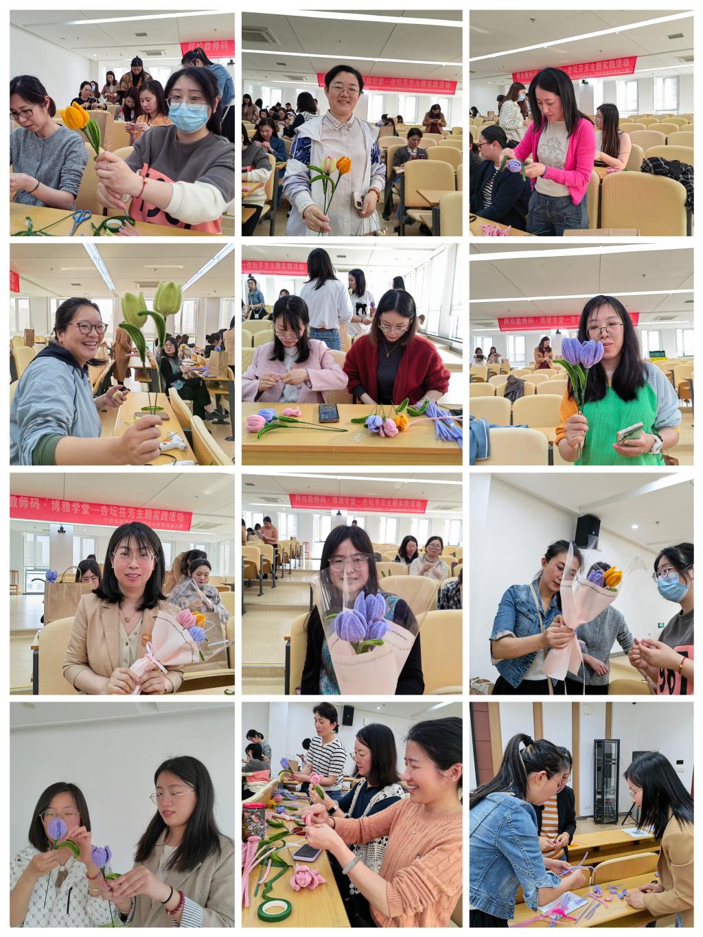此次活动由机关分工会精心组织,特邀宁波市教育工会与宁波市教育局妇工委共同打造的“阿拉教师码·博雅学堂”送教团队莅临我校,为女教职工们带来了一场别开生面的创意手工花朵制作活动。