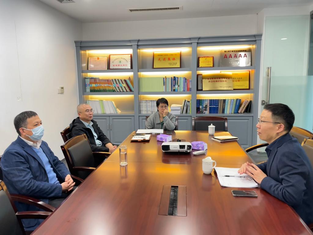 徐坚淼对浙大宁波理工学院生化学院一行的到访表示欢迎,对“院-协-企”的合作模式表示赞同,并就可合作的方向和内容提出看法。
