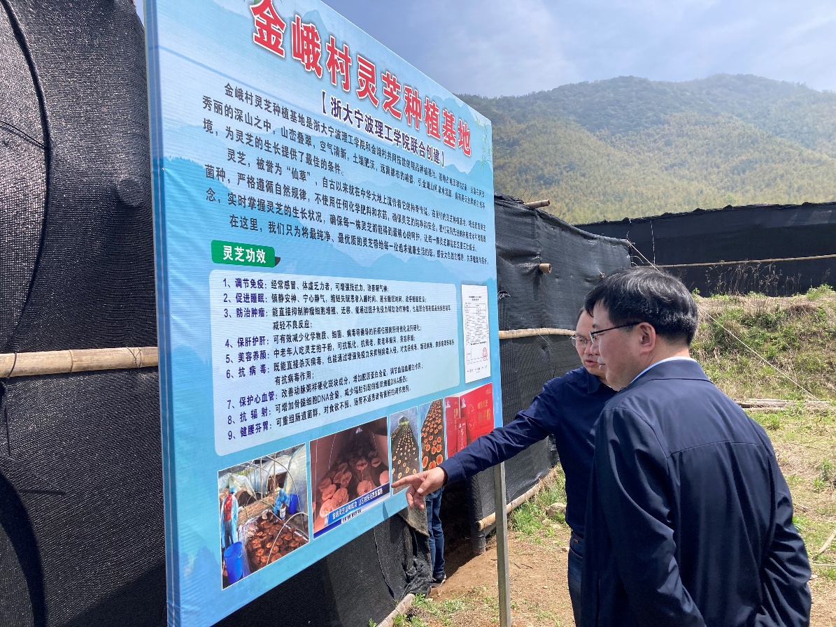 座谈交流前,杨国富副书记在金峨村党支部书记朱挺和章斌陪同下参观了朱镜我党史教育基地和灵芝种植基地。其中灵芝种植基地为我校上一期派驻金峨村的农村指导员沈建生老师带领当地村民创建。