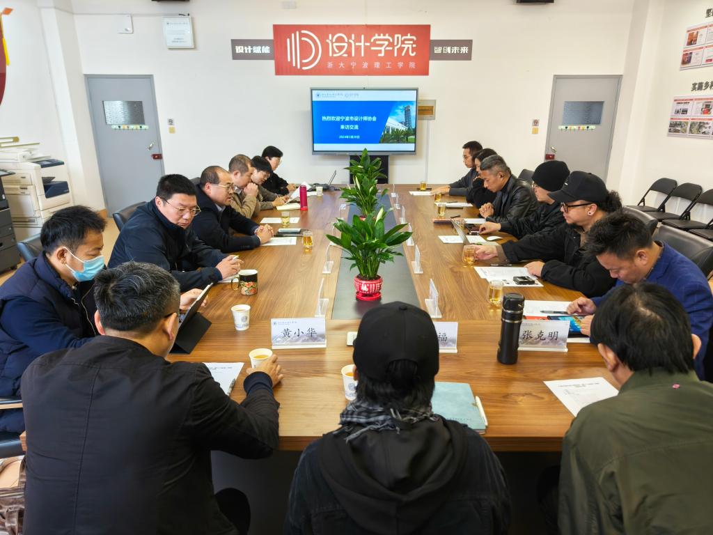 吴春对宁波市室内设计师协会一行来访表示感谢,希望双方在创业就业、实践教学和人才培养等方面形成良好的合作关系,双向奔赴,资源互补,同频共振。刘锋希望双方加强交流合作,深化合作共赢,为更好地融合和服务国家战略以及区域经济高质量发展贡献力量。夏秀敏简要介绍了浙大宁波理工学院设计学院情况,着重介绍了学院近期的发展成果。黄显锁从平台成立情况、类型定位、建设目标、合作研究内容和项目开展等方面,简要介绍了浙大宁理设计学院—人居环境研究院的情况。