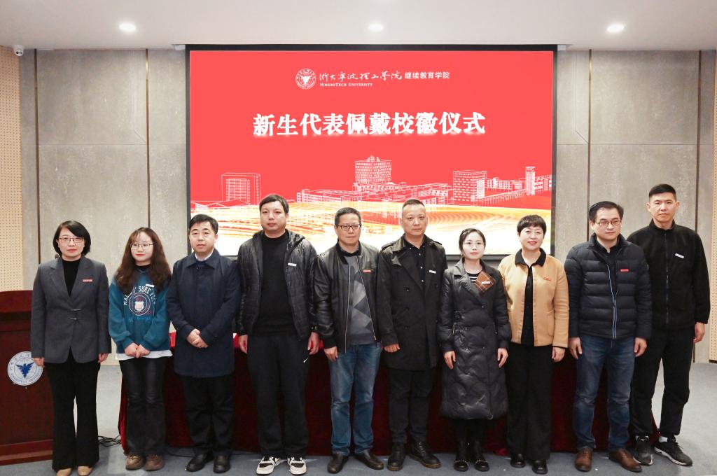 活动中,出席典礼的领导共同为新生代表佩戴校徽,标志着2024级新生正式成为浙大宁波理工学院的一员。随后,典礼现场播放了新生入学教育VCR,生动展示了学籍管理、教学管理和毕业管理的全流程制度规定。