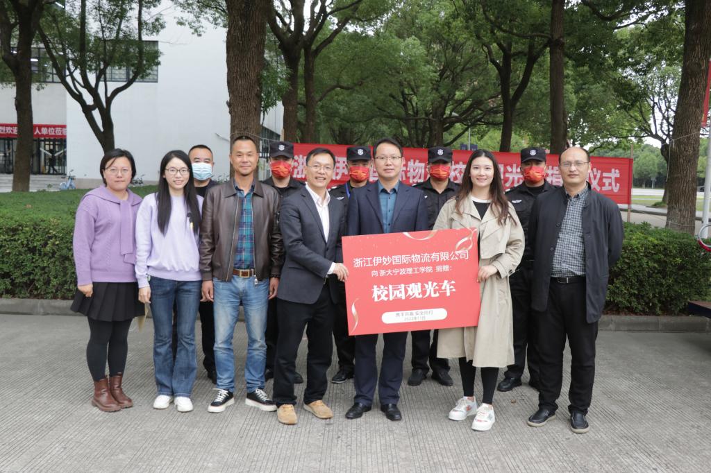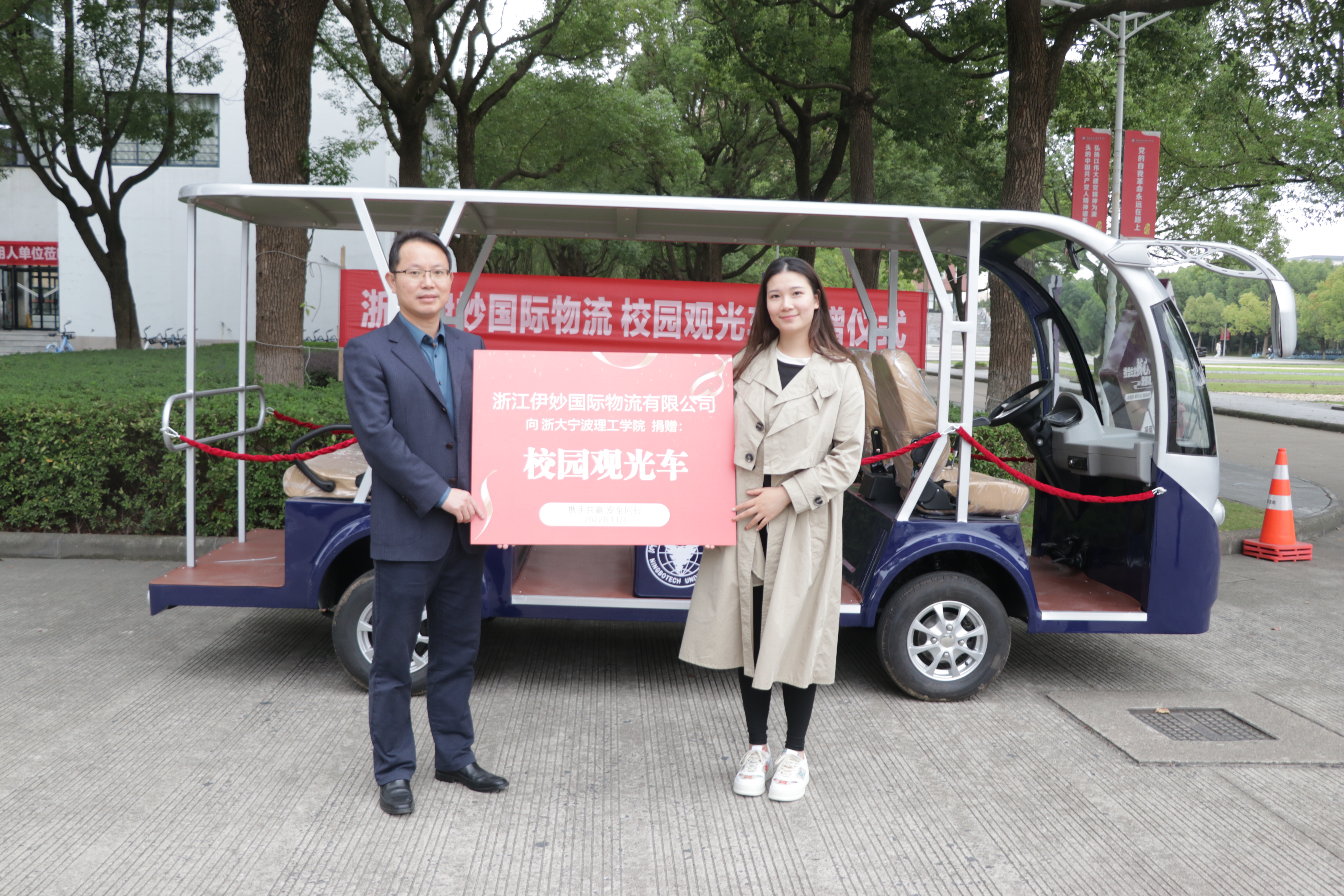 11月25日下午,学校举行捐赠仪式,校友企业浙江伊妙国际物流有限公司向母校捐赠校园观光车。学校校友、浙江伊妙国际物流有限公司董事长陈晓珂,学校副校长胡余波、招生就业处处长郑剑参加仪式,安全保卫处副处长陈恩主持仪式。
