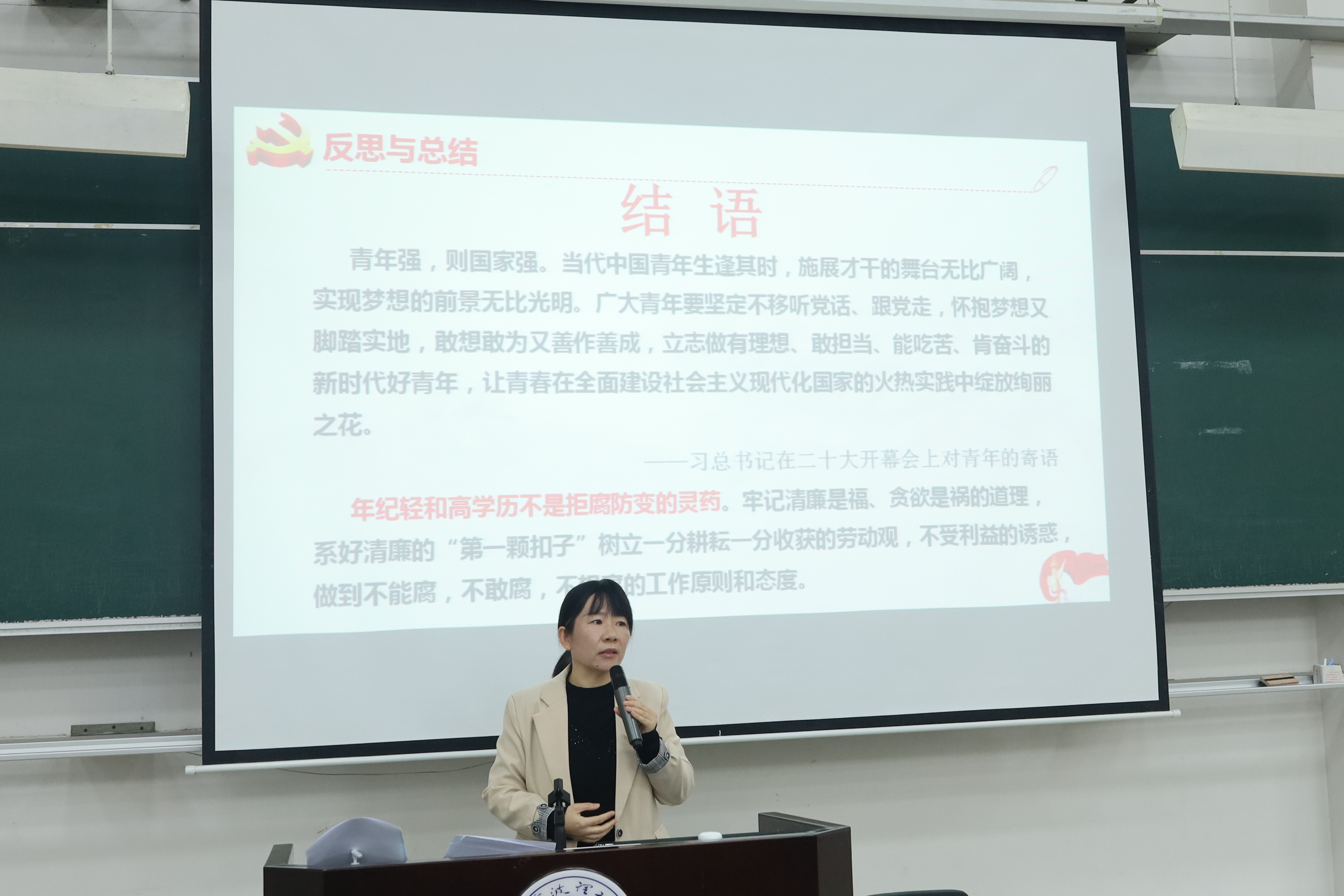 此次党课结合时事,结合同学们的生活实际和年龄特点,让同学们牢记清廉是福、贪欲是祸的道理,系好清廉的“第一颗扣子”,树立一分耕耘一分收获的劳动观,不受利益的诱惑。