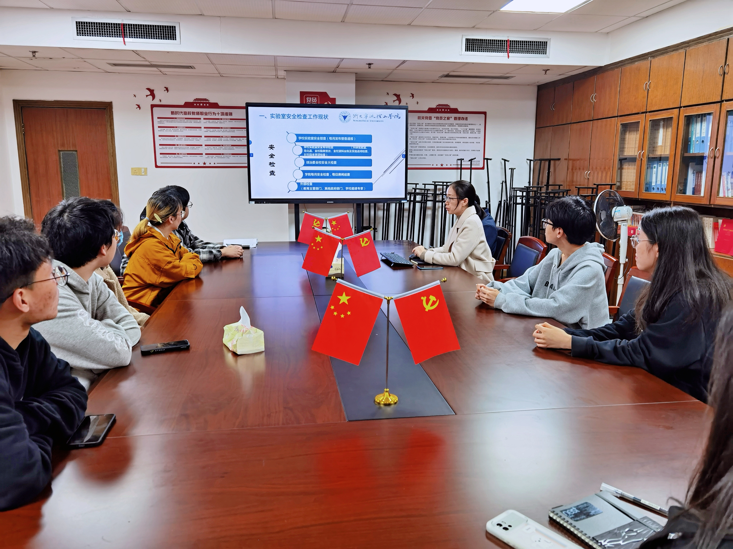 为进一步做好支部结队共建工作,增强大学生在实验室安全方面自我教育、自我管理、自我提高的意识,加强“四常”型党支部建设,发挥职能部门管理和服务育人作用,有效助力三全育人工作取得实效。11月17日,资产处党支部组织生化学院学生第二党支部积极分子在行政楼410开展校级学生安全督察员选拔培训活动,活动由资产处副处长、党支部书记邵永红主持。