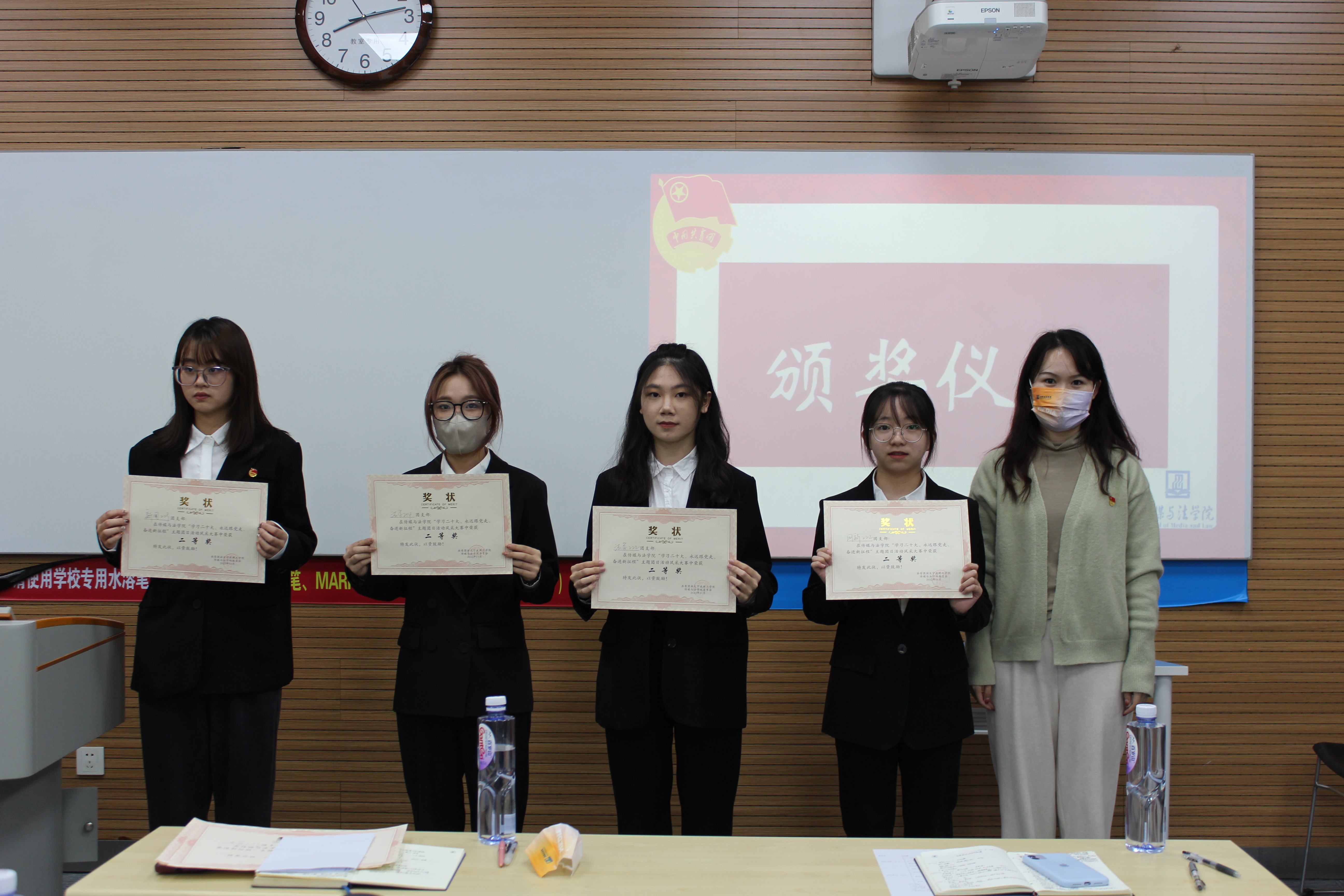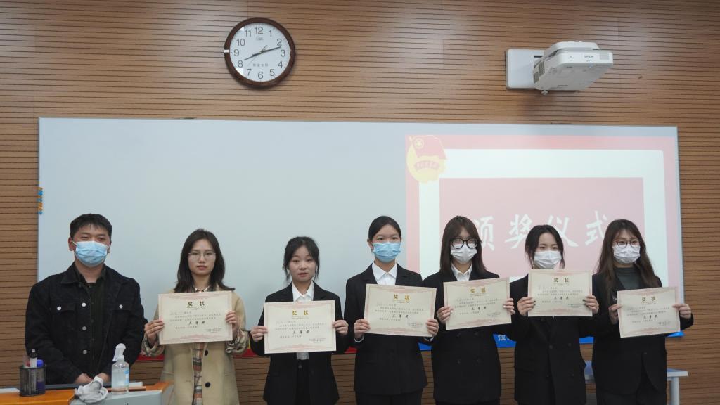 经过激烈角逐,法学213、法学211获一等奖,新闻223、网新222、法学222、法学214获二等奖,新闻211、网新213、网新224、新闻222、法学223、网新223获三等奖,新闻223获最具影响力奖,新闻211获最佳PPT制作奖。最后,大家齐唱团歌为大赛画上了圆满的句号。