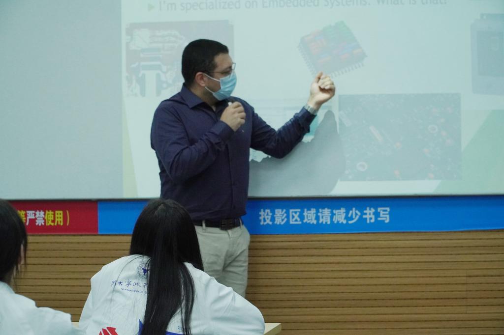 马科斯博士从一块“嵌入式开发板”导入课程,通过风趣幽默的语言和生动形象的表现形式,向学员们介绍了巴西的语言文化、地理位置、城市建设、名胜古迹、特色美食、传统音乐和体育项目等,带大家深入了解巴西的传统文化、领略巴西独特的风土人情。谈及在中国的感受,马博士表示中国是个开放包容的国家,虽然一开始在“文化、语言、饮食”等方面不适应,但人民的热情、文化的繁荣、社会的安定,让他深深早已适应并热爱上这边土地。课上,他还与同学们分享了出国留学、学历提升等方面的经验和方法。