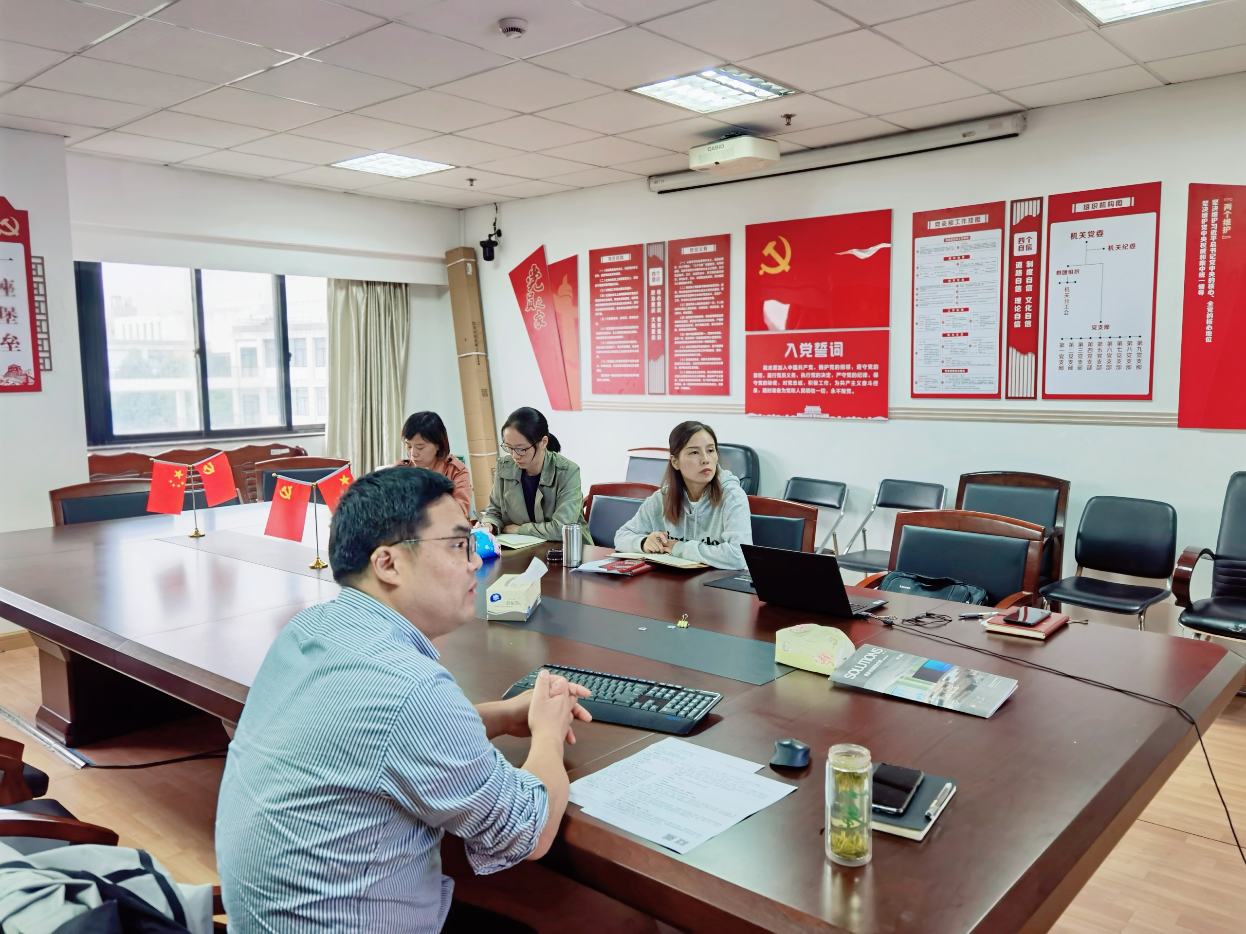 邵永红首先带领部门全体成员对党的二十大报告进行了深入学习,会上他对党的二十大报告核心要义进行了解读,重点强调了党的二十大报告中全面从严治党的内容。他强调,全体部门成员要牢固树立底线思维,养成红线不能碰,底线不能破,高压线不能踩;要突出规矩意识,将廉洁从业,廉洁办公,廉洁服务作为部门业务工作的底色,以实际行动落实全面从严治党的要求。会上,他就机关党委开展“喜迎二十大、锋领连心工程”相关工作进行了重点布置,强调要认真组织,做好实施。