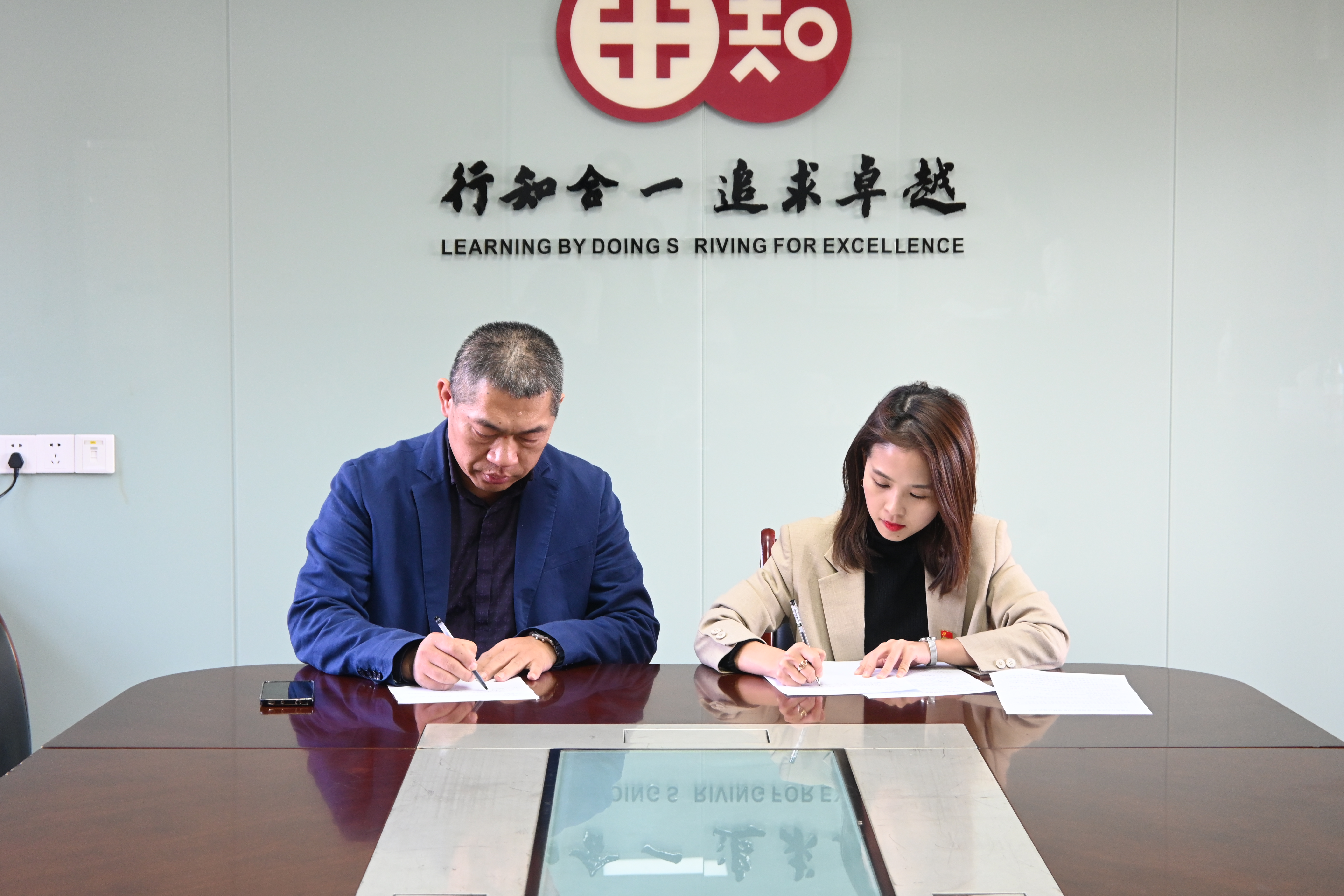 随后,浙大宁波理工学院团委业务副主管陈艳、宁波市行知实验小学校长谢增焕就行知实验小学国旗护卫队建设签订帮扶共建协议。