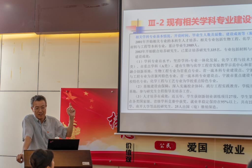材料学院教工第一党支部党员、材料学院院长方征平,教务处党支部党员、评估中心副主任章瑶,分别做省第十五次党代会精神专题党课宣讲,将党建工作与业务工作紧密结合,围绕专业学位硕士授权点培育申报和工程教育专业认证工作展开,表示在实际工作中贯彻落实党代会精神。