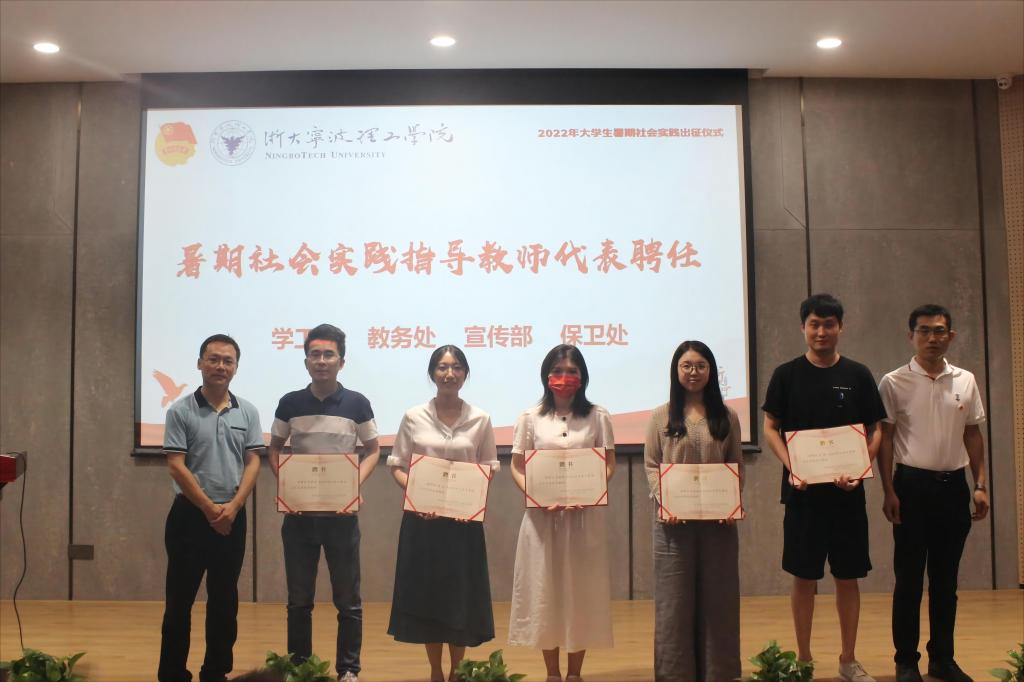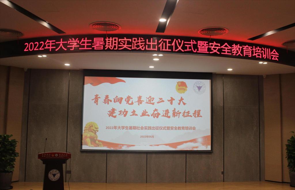 青春孕育无限希望,青年创造美好明天。6月26日晚,“青春向党喜迎党的二十大,建功立业奋进新征程” 浙大宁波理工学院2022年大学生暑期社会实践出征仪式在启新大讲堂隆重举行。学校党委副书记冯建波、学工部部长应中元、教务处处长沈昊宇、保卫处副处长陈恩、团委书记周春晓、各学院党委副书记、团委负责人、指导教师以及社会实践学生代表参加了启动仪式。