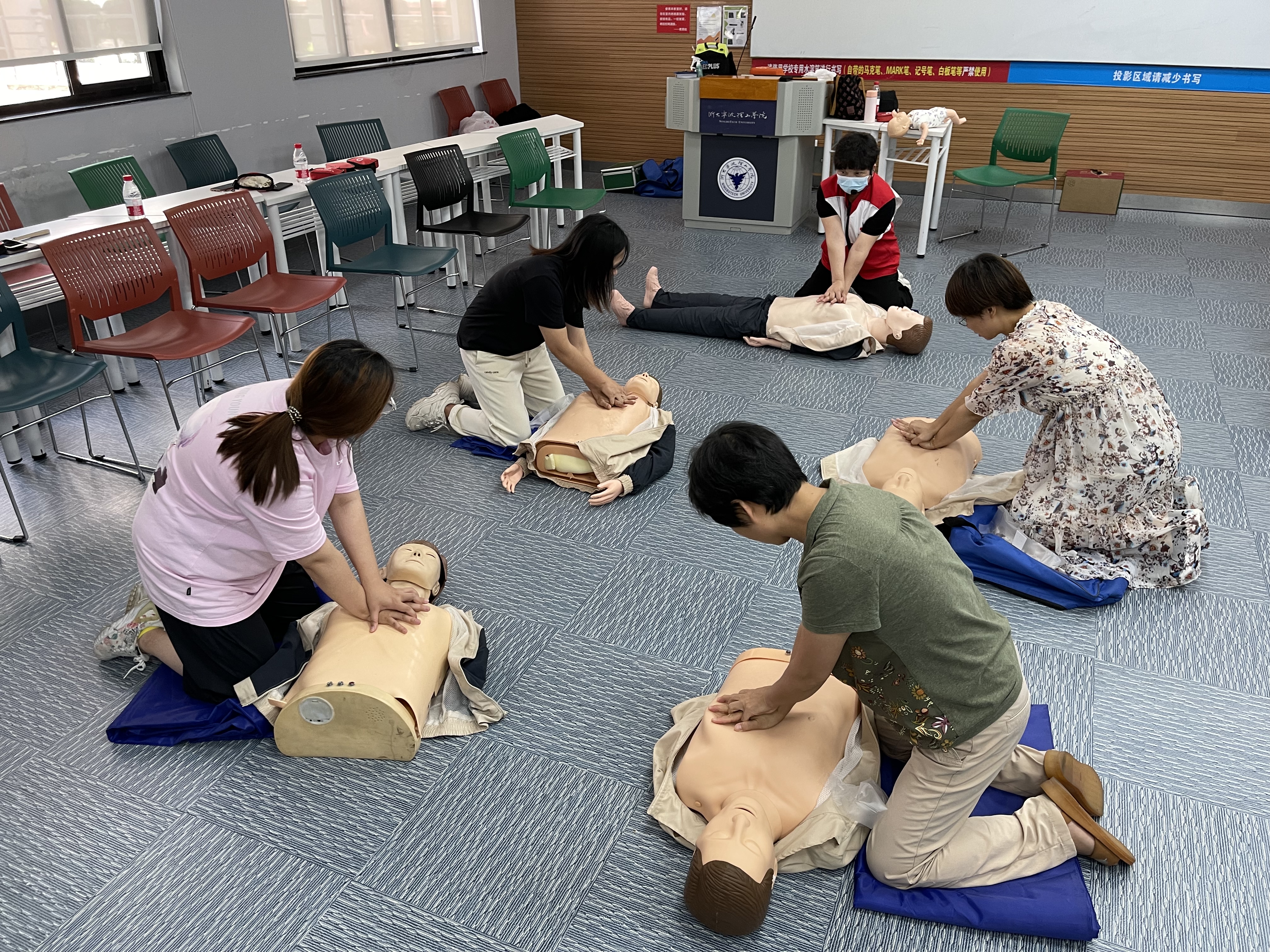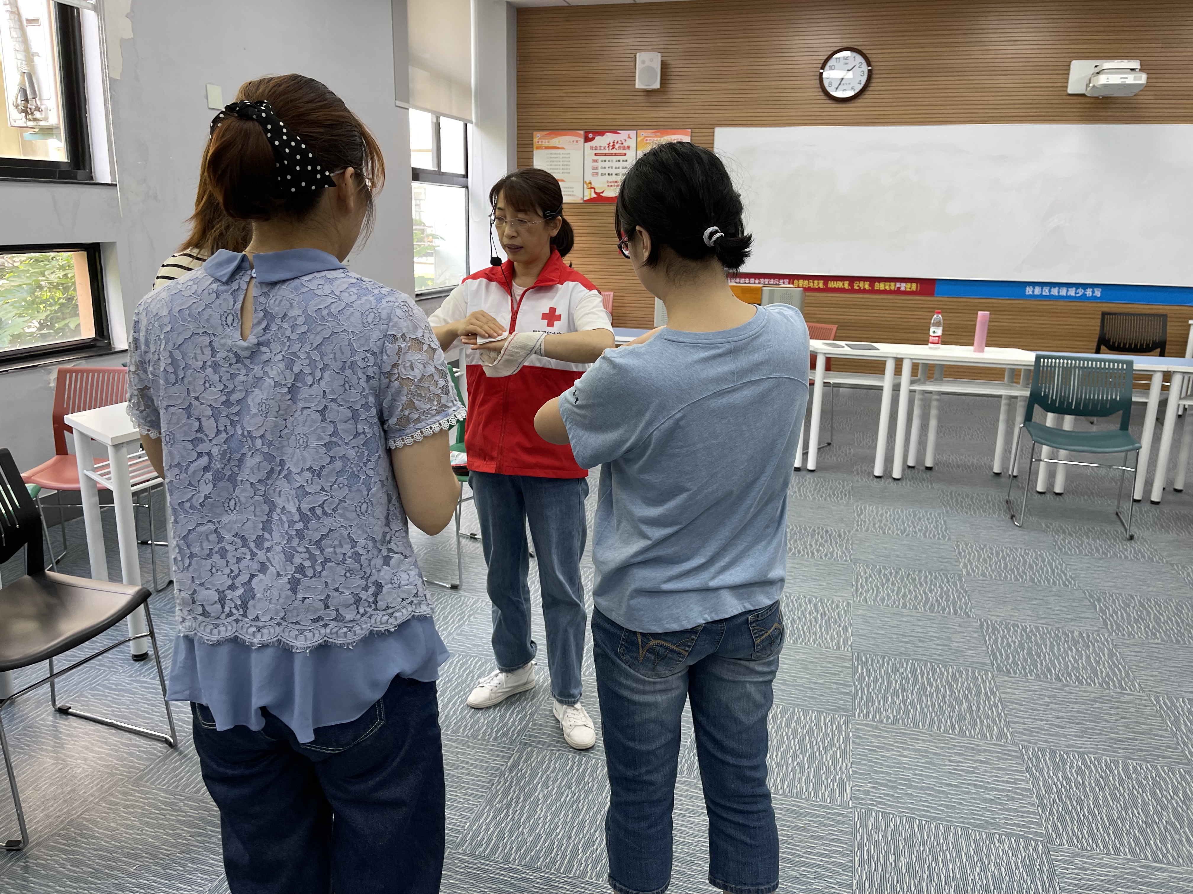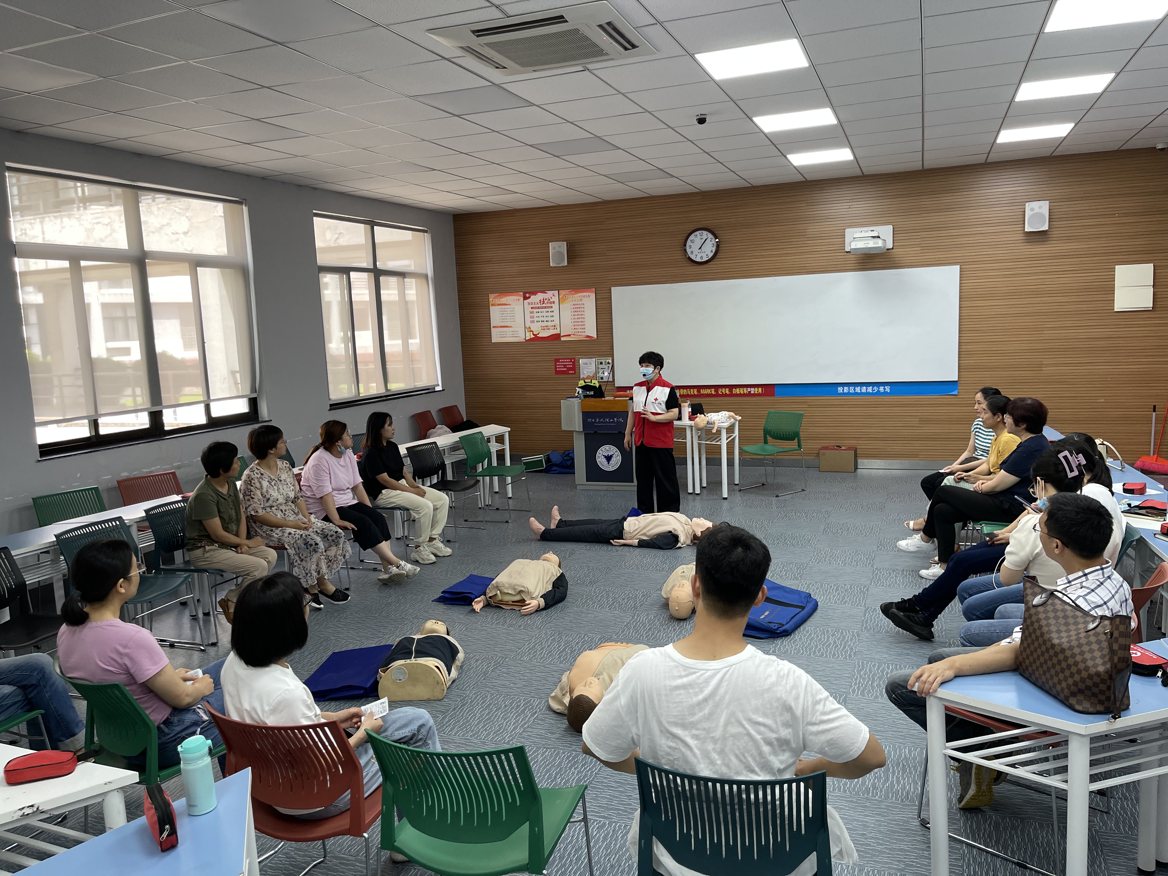 为普及学校应急救护知识,提升教职工防灾避险、自救互救能力,6月22日,学校开展红十字会救护员培训活动,鄞州区红十字会应急救护培训讲师童开妙、杨彩虹、谢斌钢担任主讲,学校三十余位教职工参与培训活动。