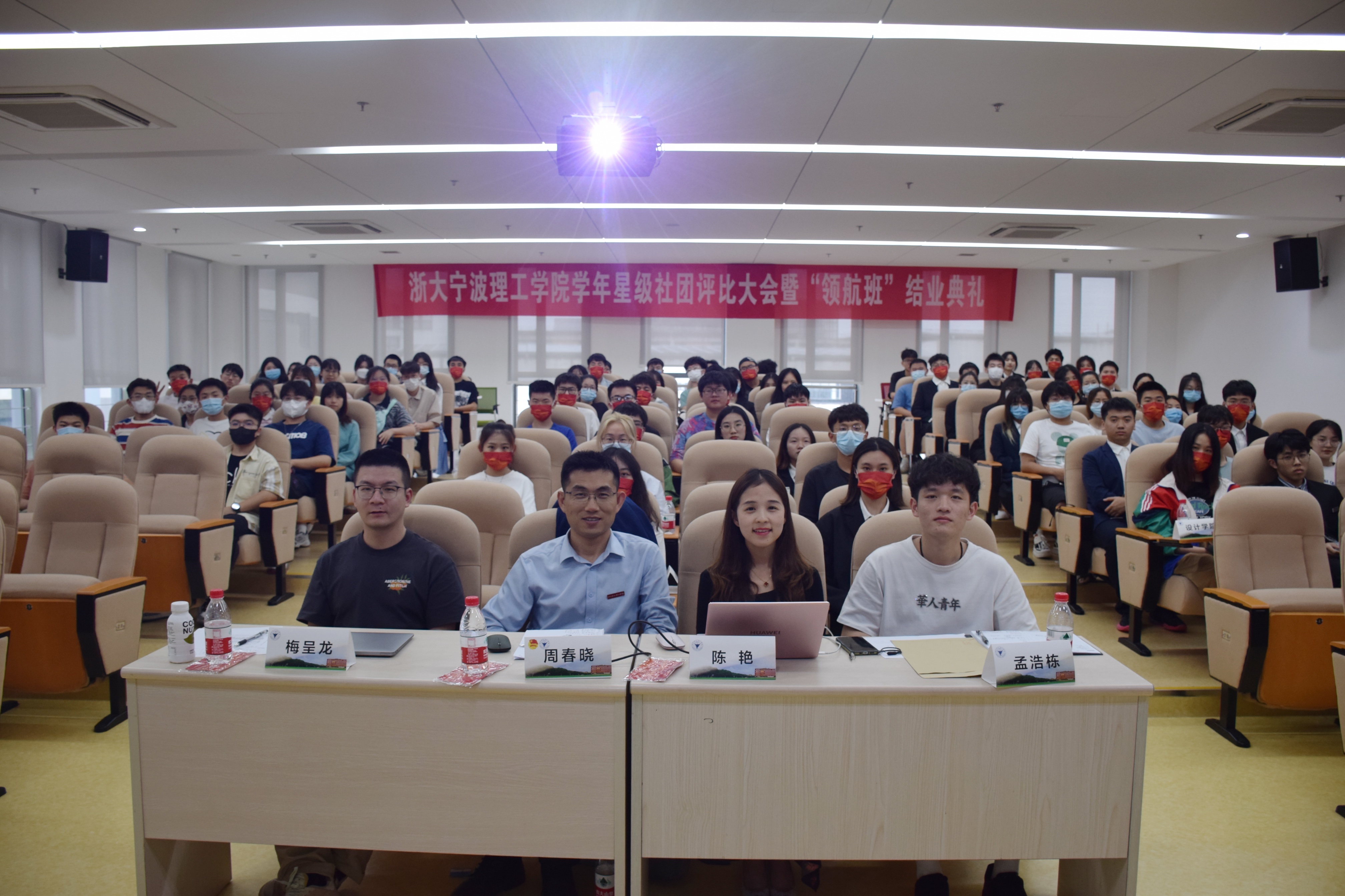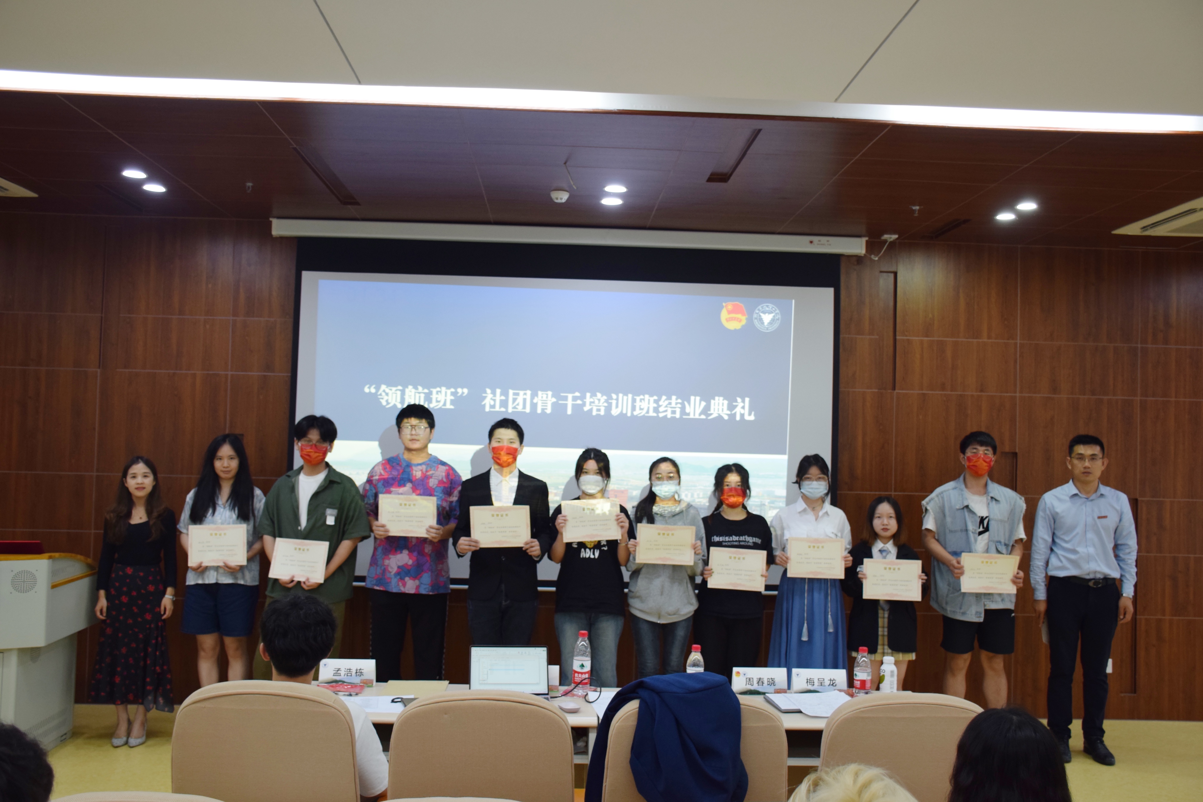 仪式上,举行了第一届“领航班”社团骨干培训班结业典礼。校学生会社团领航中心主任徐静颖公布考核结果,142名学员顺利结业、圆桌法学社毛周璐等38名学员获得“优秀学员”称号。周春晓、陈艳为优秀学员代表颁奖。