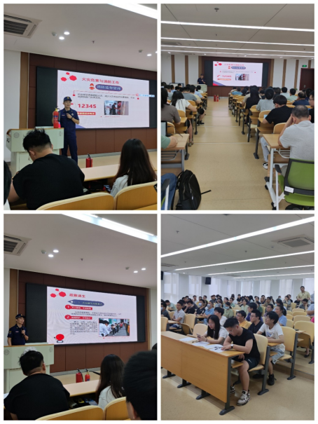此次活动特邀首南消防救援站班长黎健,为师生普及火灾危害与消防工作、校园火灾及预防和疏散逃生等消防安全知识。强调做好学校防火安全工作的重要性和参与消防应急处置演练的必要性。参加讲座和演练人员包括各学院和在校研究生共约110余人。