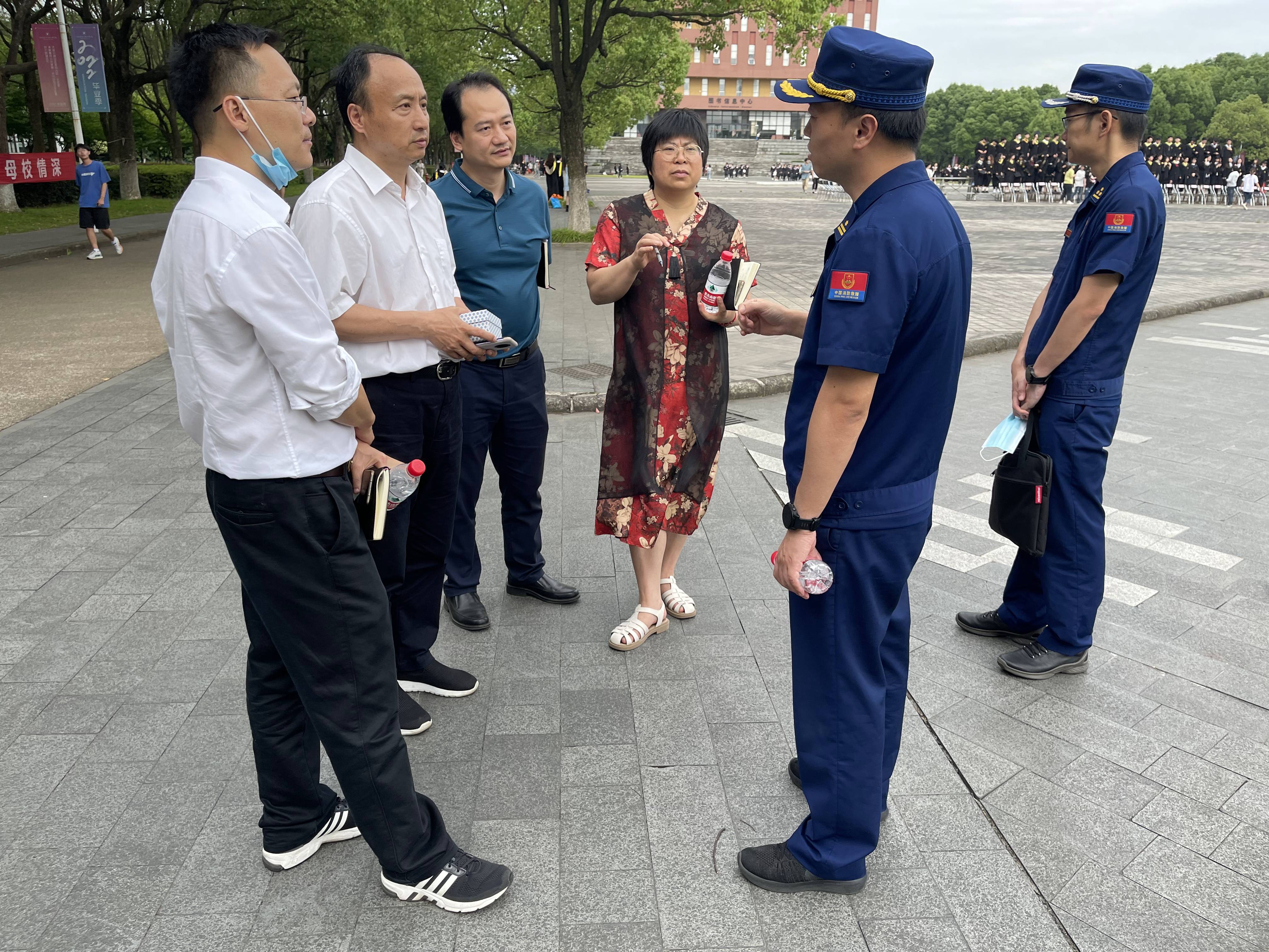 为切实做好消防安全工作,筑牢学校“防火墙”,6月9日下午,鄞州消防救援大队副大队长丁振带队对学校消防安全进行全面检查指导,学校党委书记胡征宇、党委副书记冯建波、副校长胡宇波与检查指导组进行深入交流,双方表示要强化校地交流,在人才培养、安全教育等方面建立合作机制。学校安全保卫处、总务处、学生处、资产与实验设备处等部门负责人陪同检查。