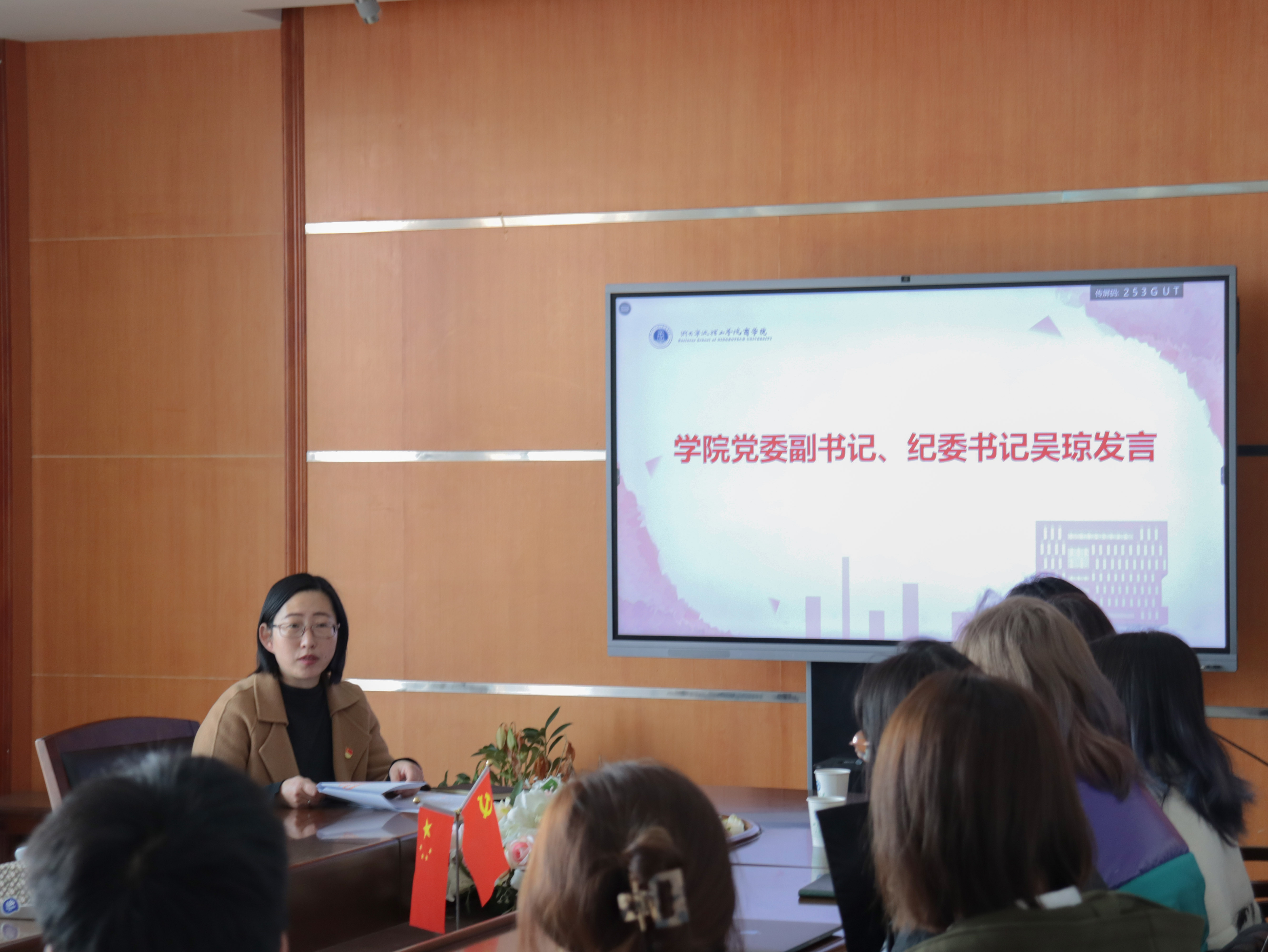校长办公室副主任刘群娣和教科战略研究院副院长张国昌作为学校机关一支部党员干部前来授党课。学院党委副书记、纪委书记吴琼,各学生党支部书记、学生党员代表、团学干部代表、团支部代表共同参加了活动,活动由吴琼主持。