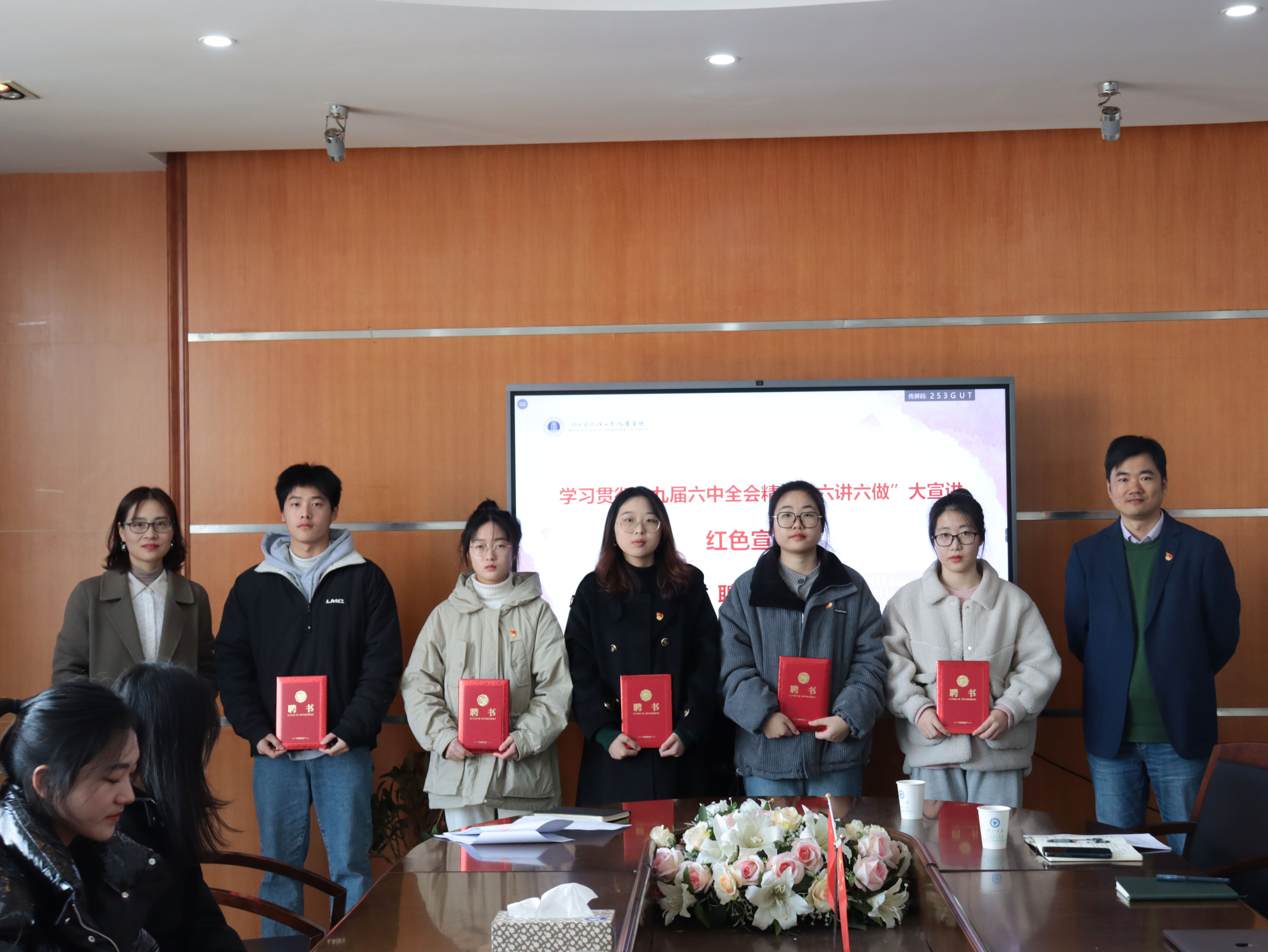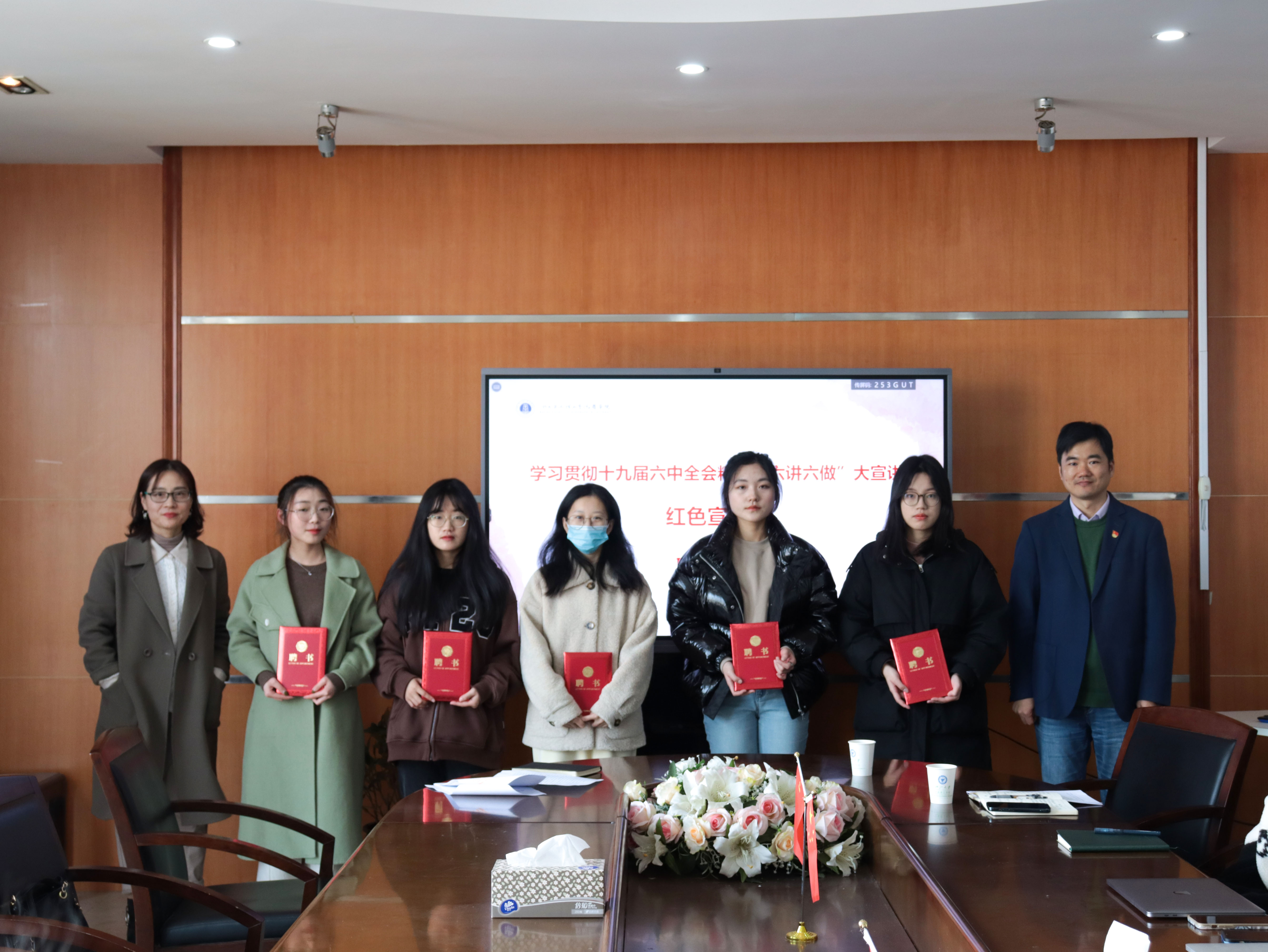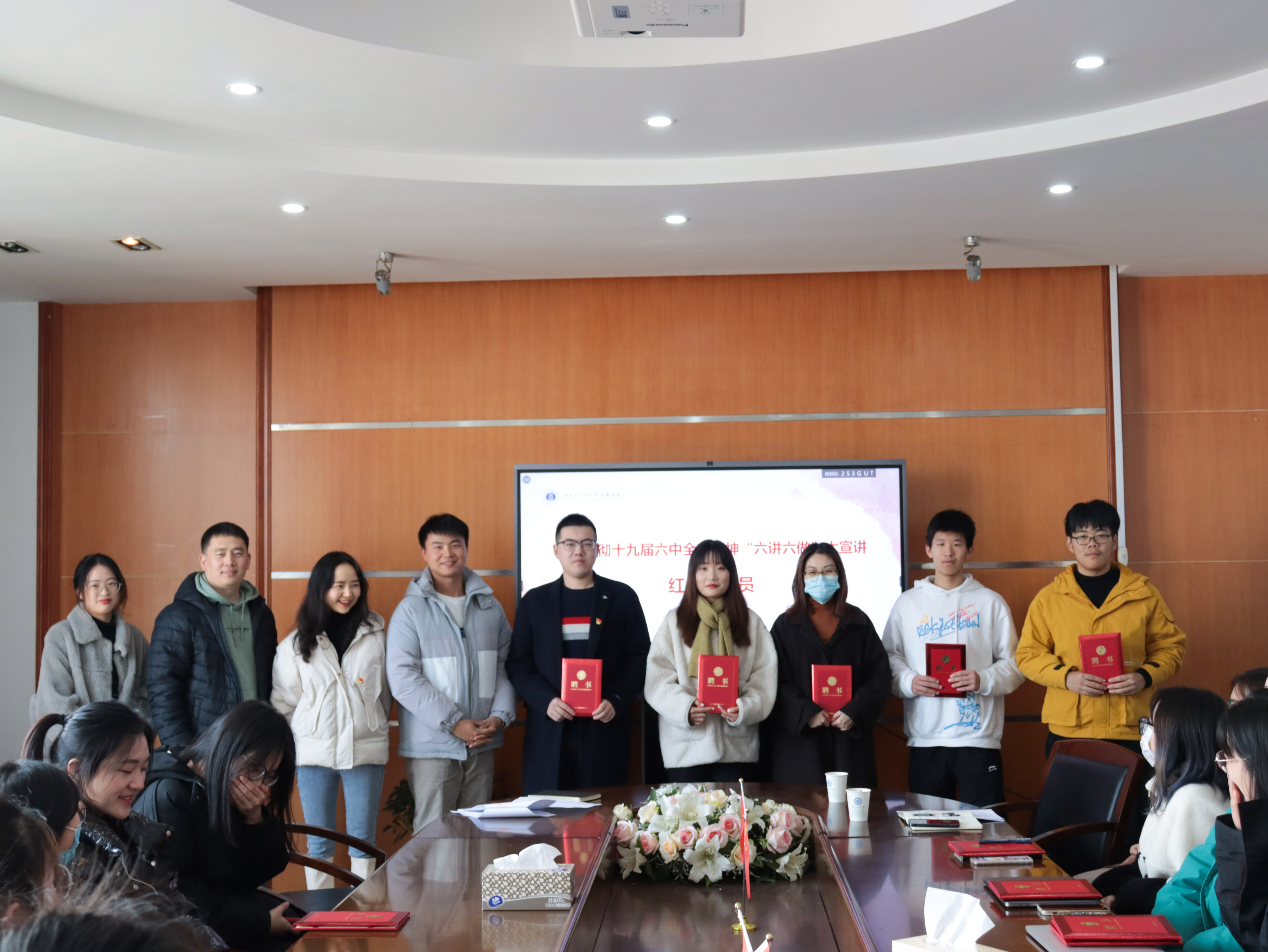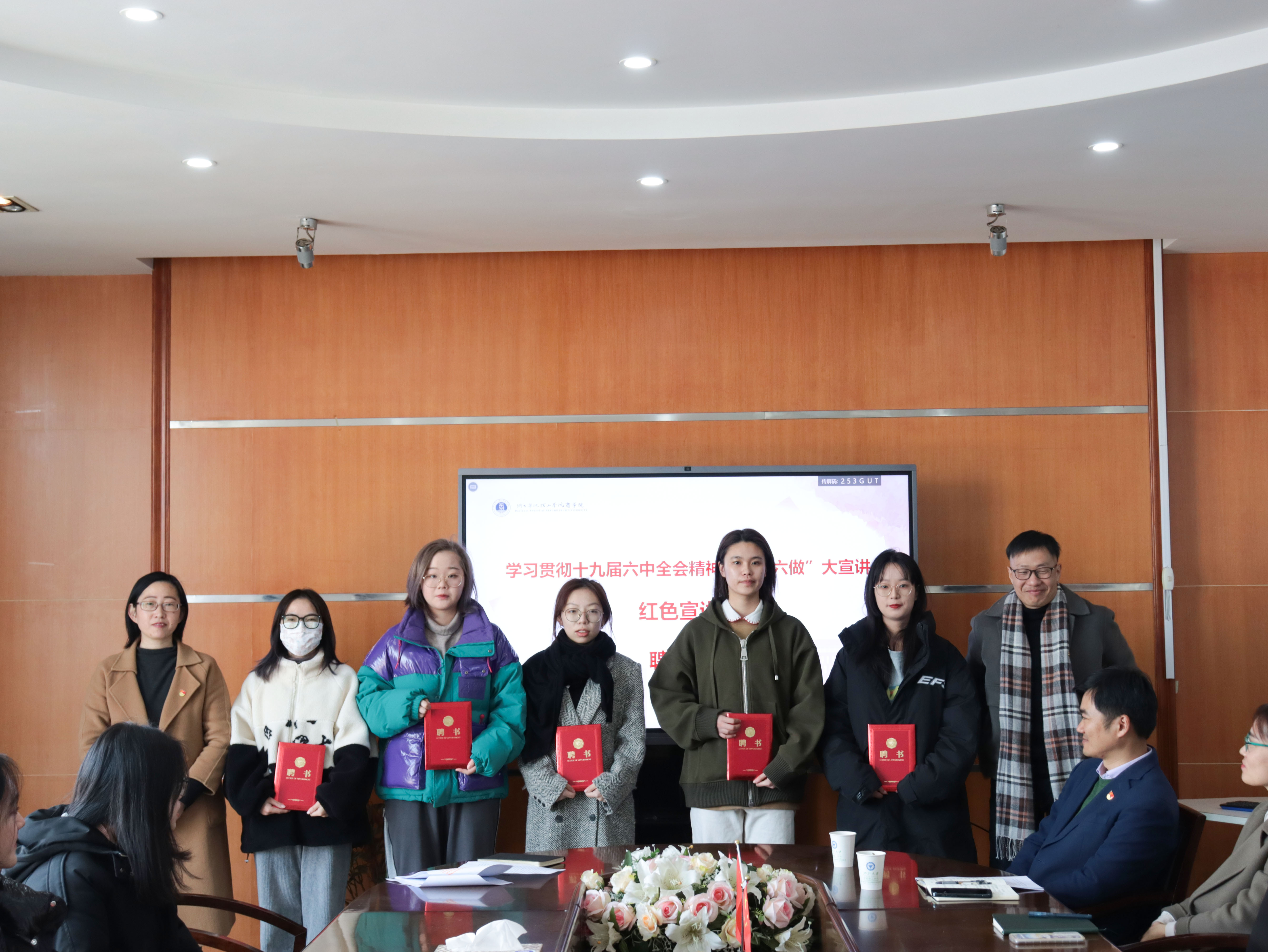 随后进行宣讲团聘任仪式,两位嘉宾老师、支部书记们为宣讲员颁发聘书。