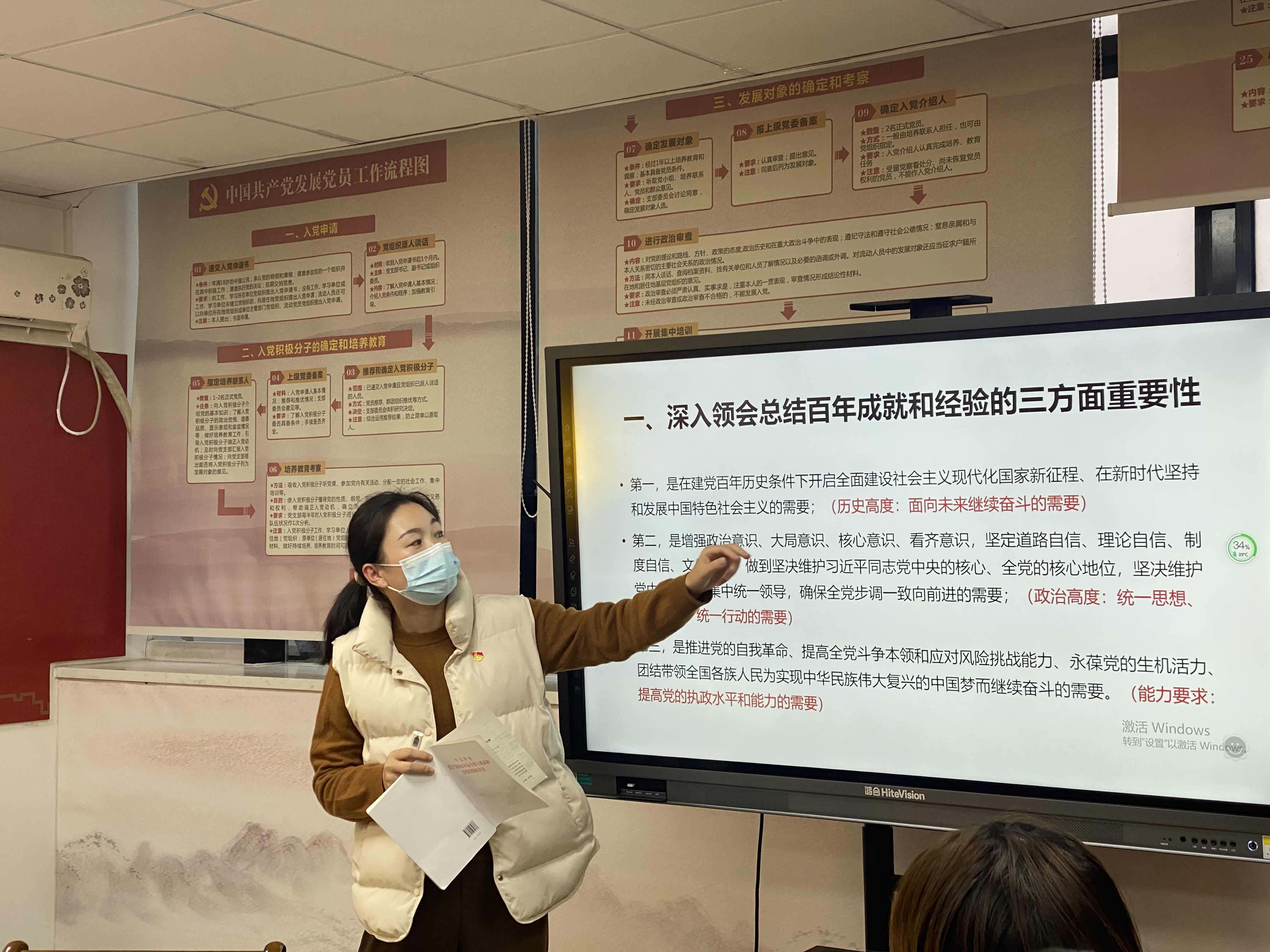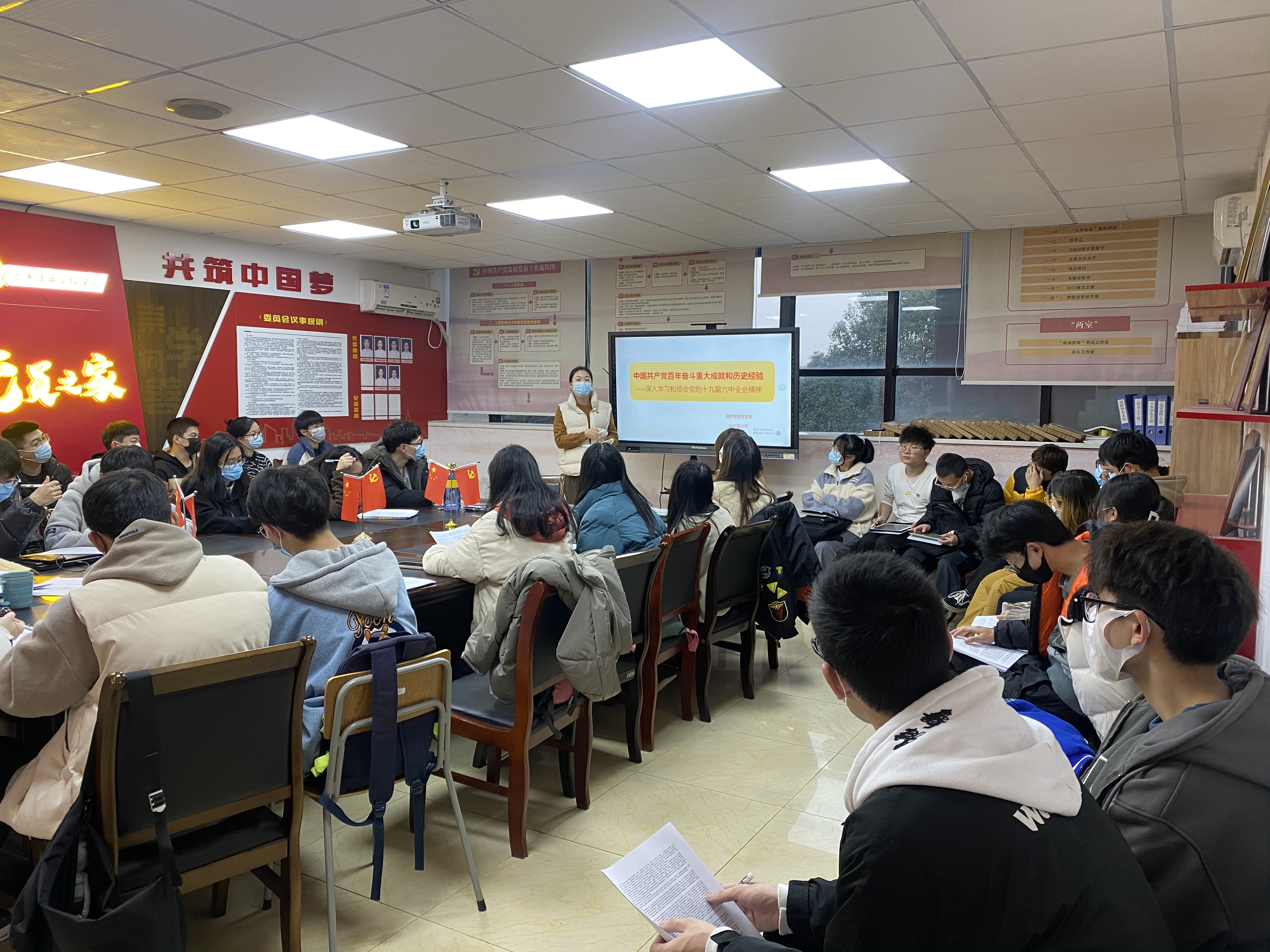2021年12月8日下午3点,土木建筑工程学院道桥学生党支部在党员之家开展党的十九届六中全会精神宣讲活动,支部书记周星老师主讲。