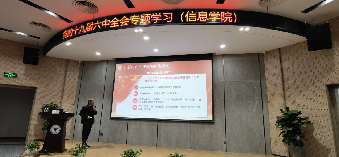 12月2日下午,信息科学与工程学院在启新学院举行党的十九届六中全会精神专题学习会,学校副校长杨灿军教授以《感恩、包容、求是、创新》为题,为信息学子作了专题辅导报告。