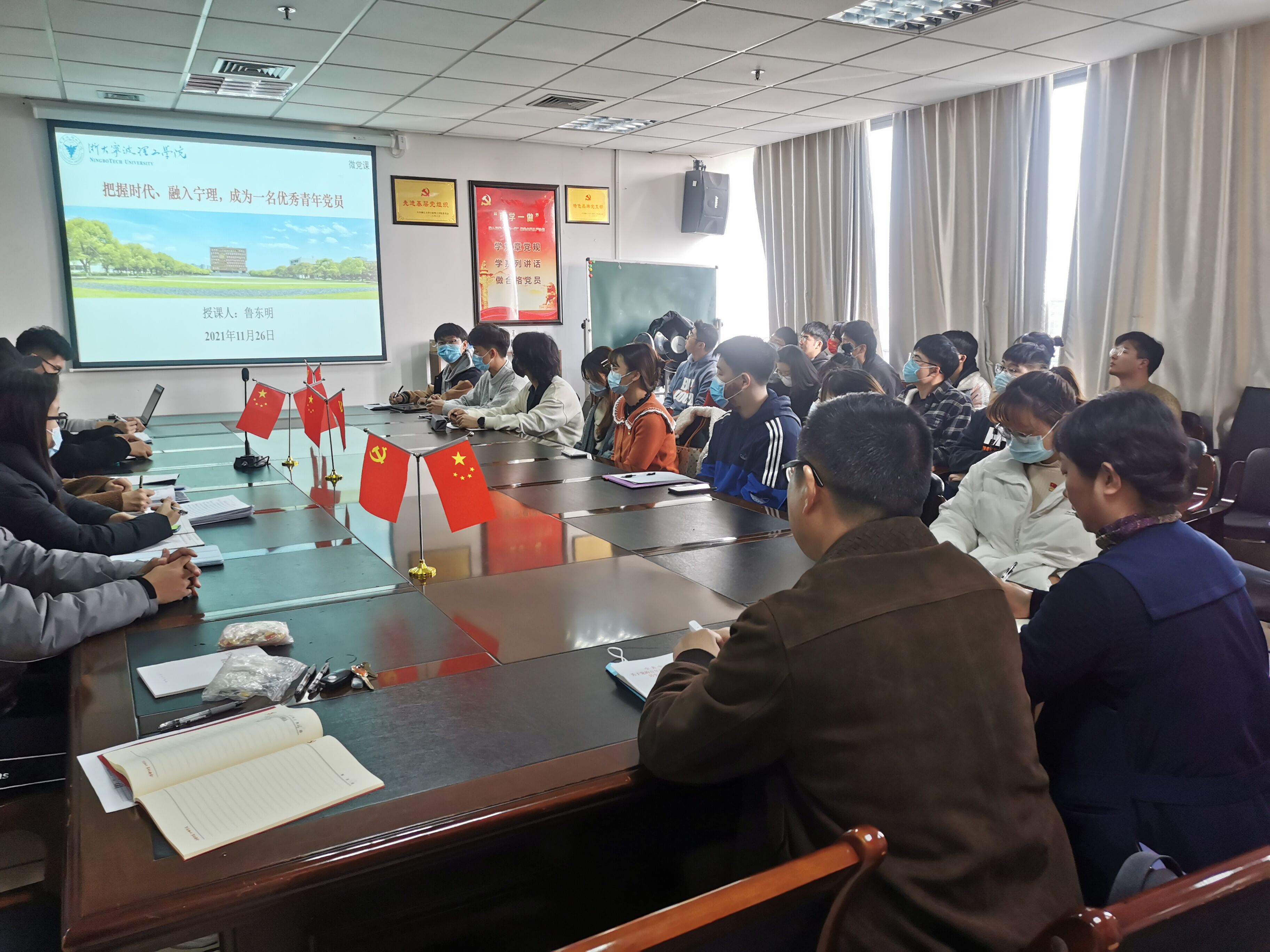 根据《中共浙江省教育厅委员会办公室关于建立高校党委书记领办党建重要项目清单和班子成员基层党支部工作联系点清单的通知》和学校校领导联系基层党支部“五个一”的工作要求,11月26日下午学校党委委员、副校长鲁东明老师在石麟602党员之家为数据学院计算机学生党支部党员开展了主题为“把握时代、融入宁理,成为一名优秀青年党员”的专题党课。计算机学生党支部全体党员参加,党课由学院党委副书记、纪委书记汪洪老师主持。