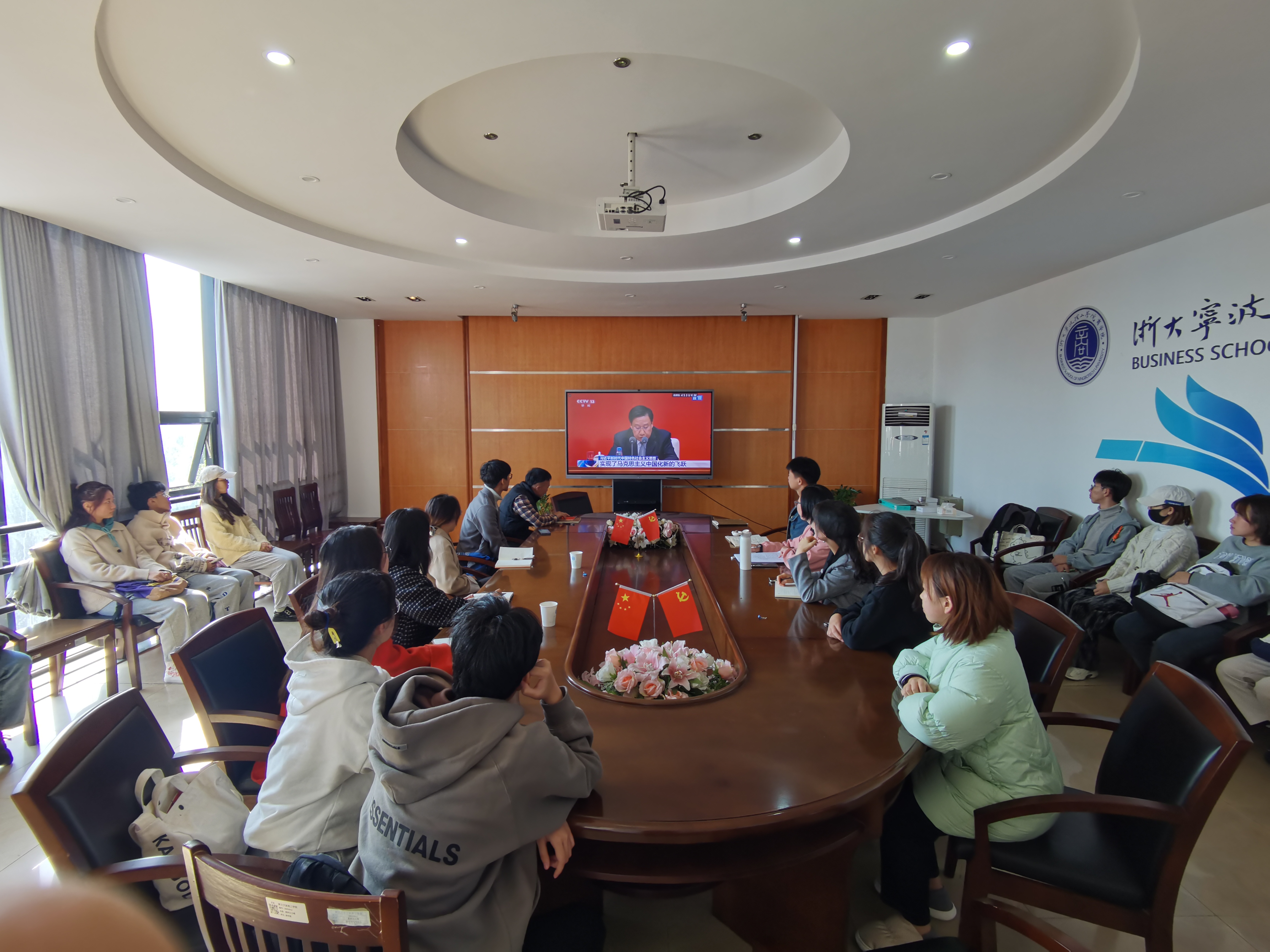 11月12日上午10时,党的十九届六中全会新闻发布会召开,商学院组织师生在SC415共同观看直播,学院党委副书记、纪委书记吴琼,学生党支部书记、学生党员、团学骨干共同学习。