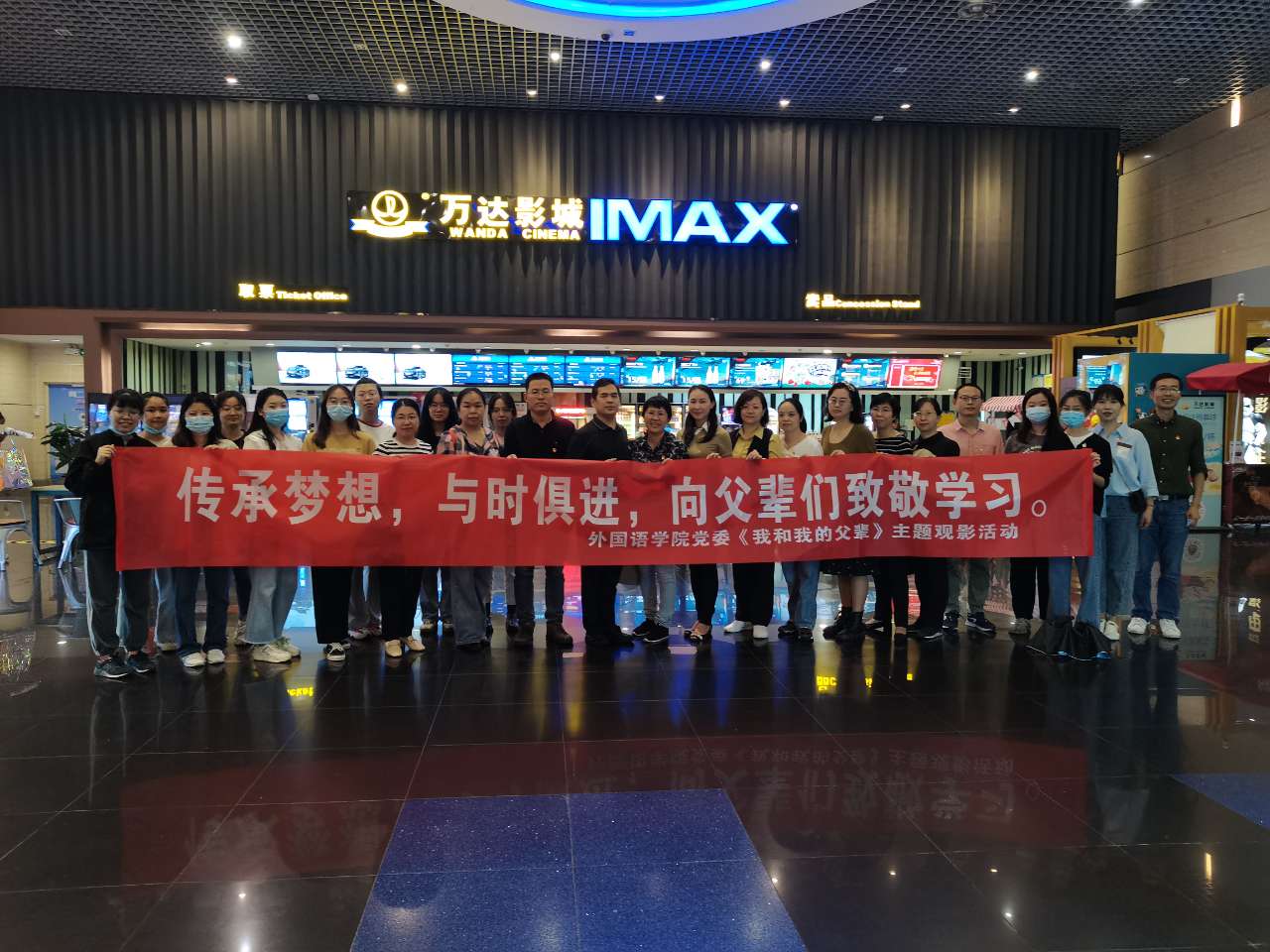 为进一步加强革命传统教育和先进典型教育,引导党员干部庚续革命传统,传承红色基因,2021年10月13日晚,外国语学院党委开展”传承梦想,与时俱进,向父辈们致敬学习”的主题党日活动,组织学院师生党员共55人前往鄞州万达影城学习观影《我和我的父辈》。