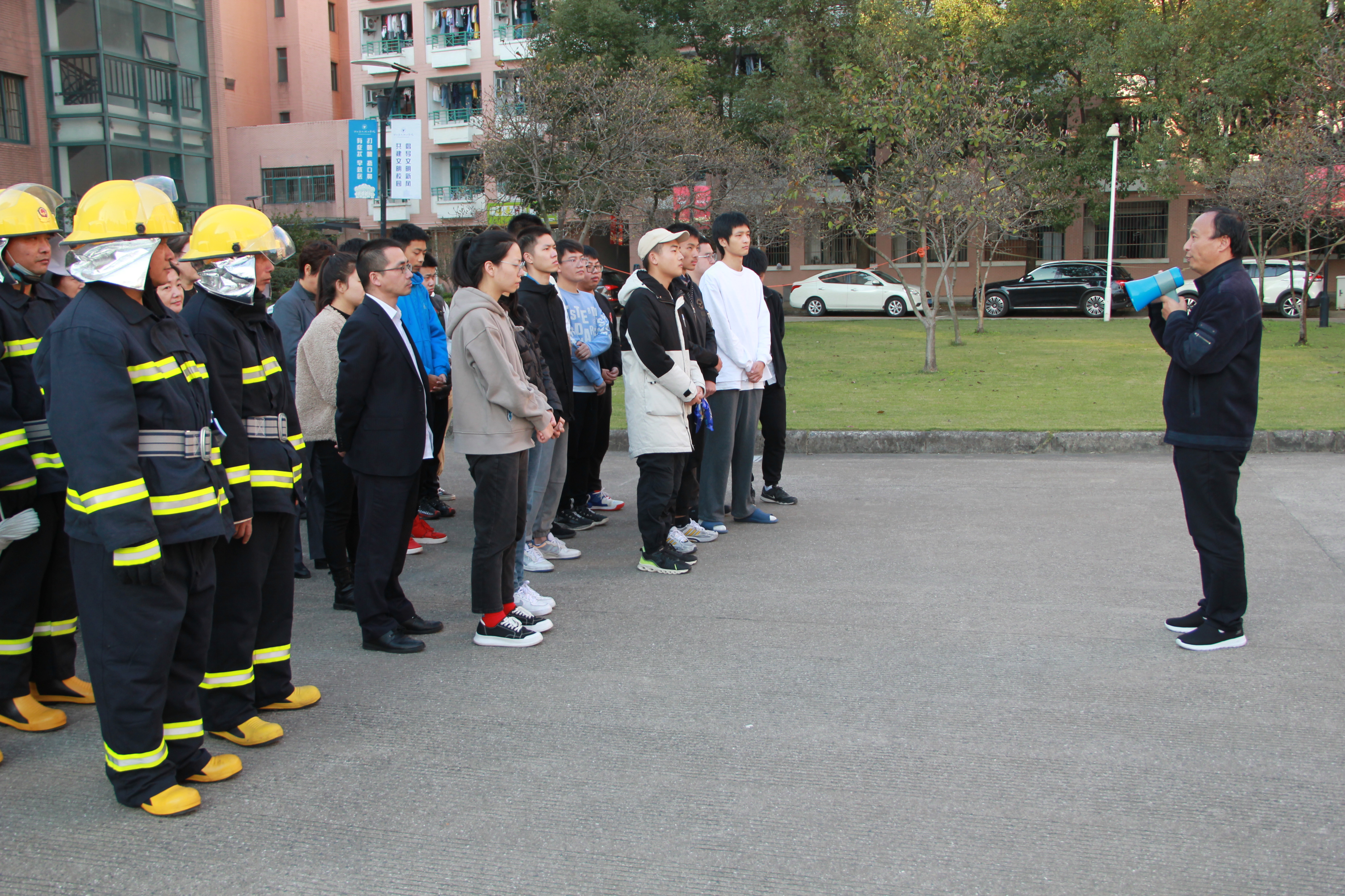 今年11月9日是我国第30个“全国消防日”,为增强师生员工消防安全意识,提高师生员工应对突发火灾事故的处置能力及自防自救能力,11月9日下午,学校在生活区三期举行以“落实消防责任,防范安全风险”为主题的消防安全应急演练活动,模拟火灾救援。学校党委副书记冯建波、安全保卫处副处长陈恩出席本次演习,保卫干部、校卫队员、公寓全体员工、各学院学生代表参加本次演习。