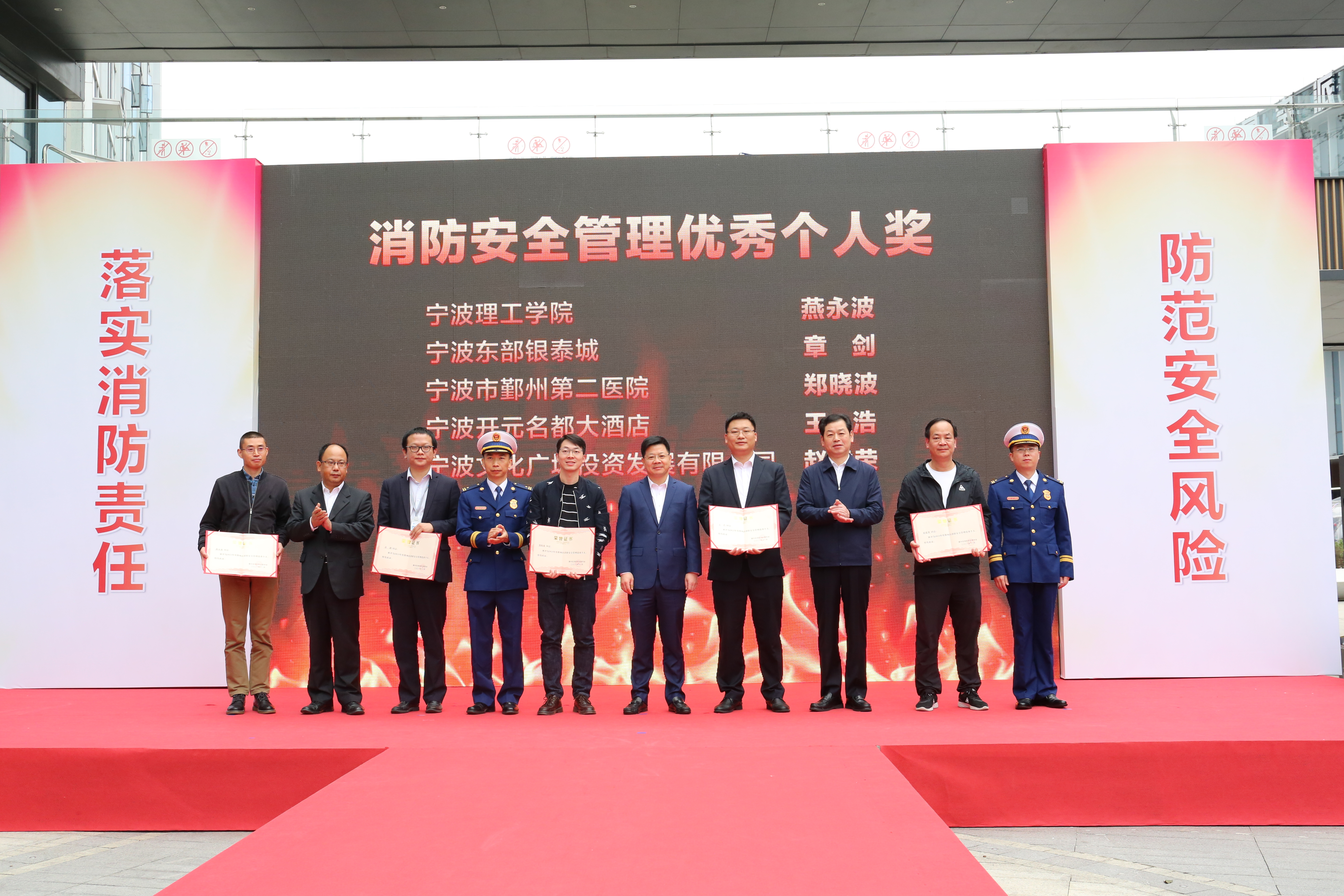 2021年11月3日下午,由鄞州区人民政府主办、鄞州区委宣传部和鄞州区消防救援大队承办的2021年度鄞州区消防管理部门表彰仪式在星空里广场举行。我校安全保卫处老师燕永波被评为“2021年度鄞州区消防安全管理优秀个人”,“求是鹰安全卫队”队长戴贤泽被聘为“鄞州区消防志愿者”。